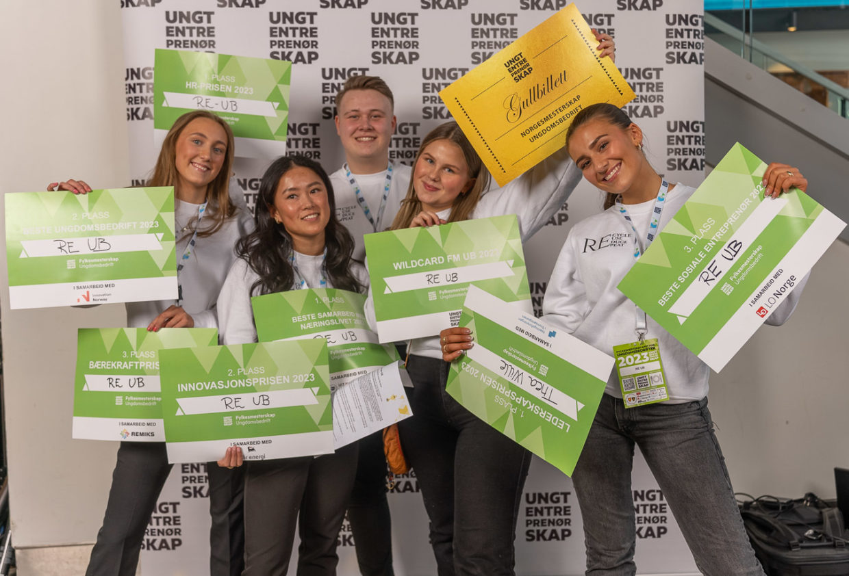 RE UB fra Vadsø Videregående deltar i det grønne skiftet lokalt ved å gjenbruke glassflasker som skulle blitt sendt til utlandet, og bruker dem til å lage nye, moderne og tidløse produkter som vannglass vaser, lysestaker og duftlys. Under NM skal gjengen i RE UB representere Troms og Finnmark i en rekke kategorier, inkludert: Beste innovative vare/tjeneste, Beste sosiale entreprenør, Beste samarbeid med næringslivet, Beste HR-bedrift, Beste bærekraftige stand, Bærekraftsprisen, Beste regnskap, Beste forretningsplan/-modell og Beste markedsføring.