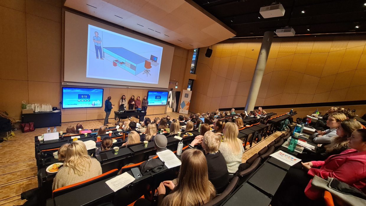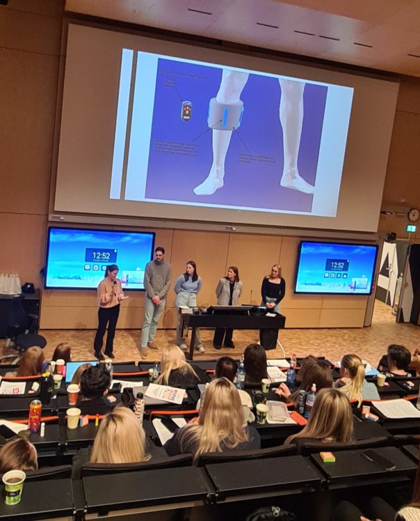 100 nervøse studenter fyller radene i Auditorium Cerebrum på helsefakultetet ved UiT torsdags morgen. Dagens eksamen er ikke som noen annen studentene har hatt. De siste ukene har de blitt utfordret i faget SYP-2620 til å finne svar på problemer de selv har kjent på i sine praksisperioder, og i dag skal innovasjonene deres presenteres foran en jury av fagpersoner – både innen sykepleie og innovasjon.