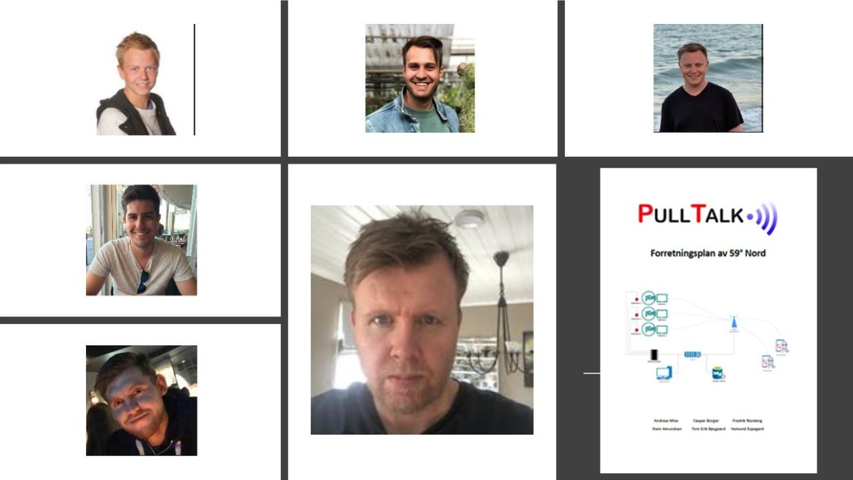 Andreas Moe, Stein Amundsen, Vemund Espegard, Casper Borger, Fredrik Nordeng, Tom Erik Bøygaard står bak 59°Nord SB. De har laget produktet PullTalk, et system for helseinstitusjoner og sykehus, som skal gjøre hverdagen tryggere for pasienter og enklere for helsepersonell.