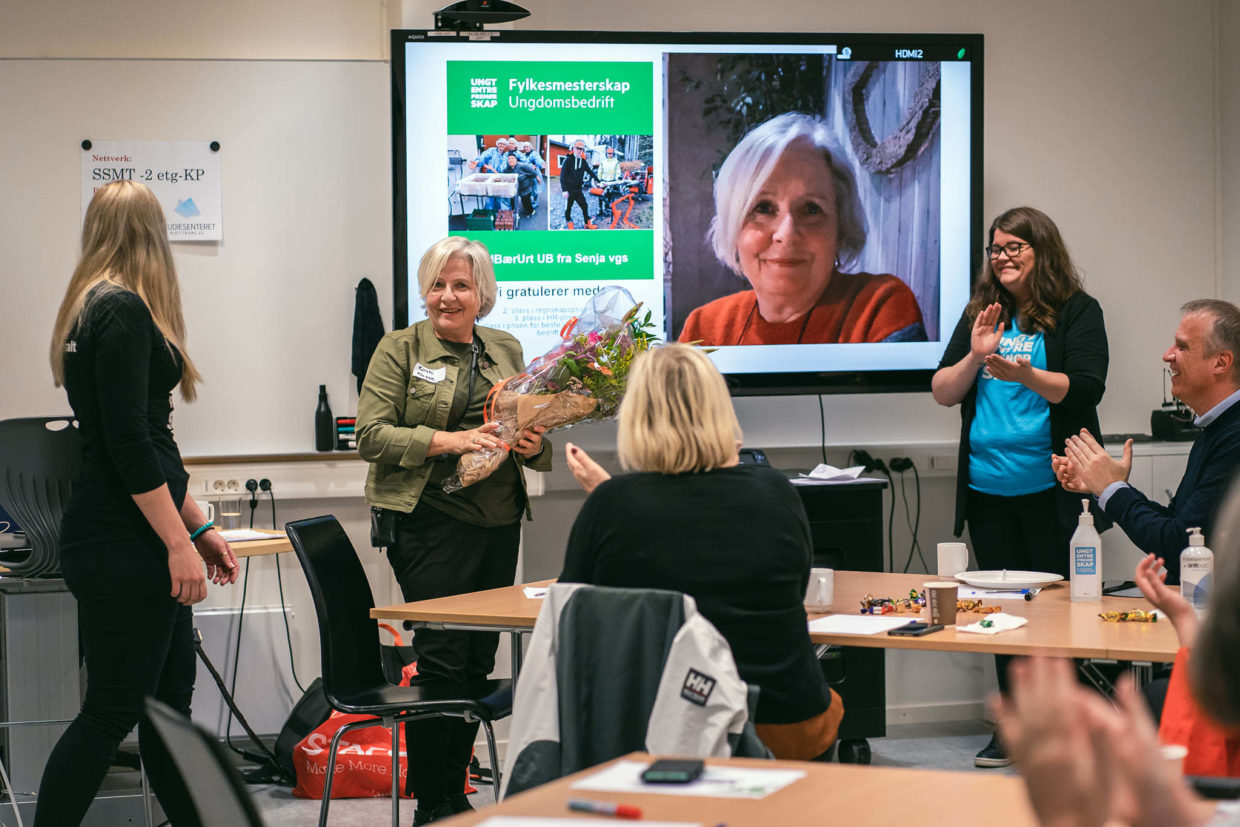 Fokuset i UE ligger ofte på elevene og de flotte prestasjonene som gjøres i forskjellige sammenhenger. For å få dette til er det utrolig viktig med gode lærere som jobber godt sammen med elevene sine, men på samme tid gir dem frihet til å finne løsningene selv. Hvert år velger UE Troms en lærer som vi mener har utmerket seg over tid som god pedagog og et forbilde for hvordan man jobber med entreprenørskap i skolen. I år gikk prisen til Kirsti Kleppe fra Senja VGS. Hun har i mange år jobbet med ungdomsbedrift som metode i sitt arbeid på yrkesfag, og leverer gode og prisvinnende kandidater hvert år. Vi gratulerer!