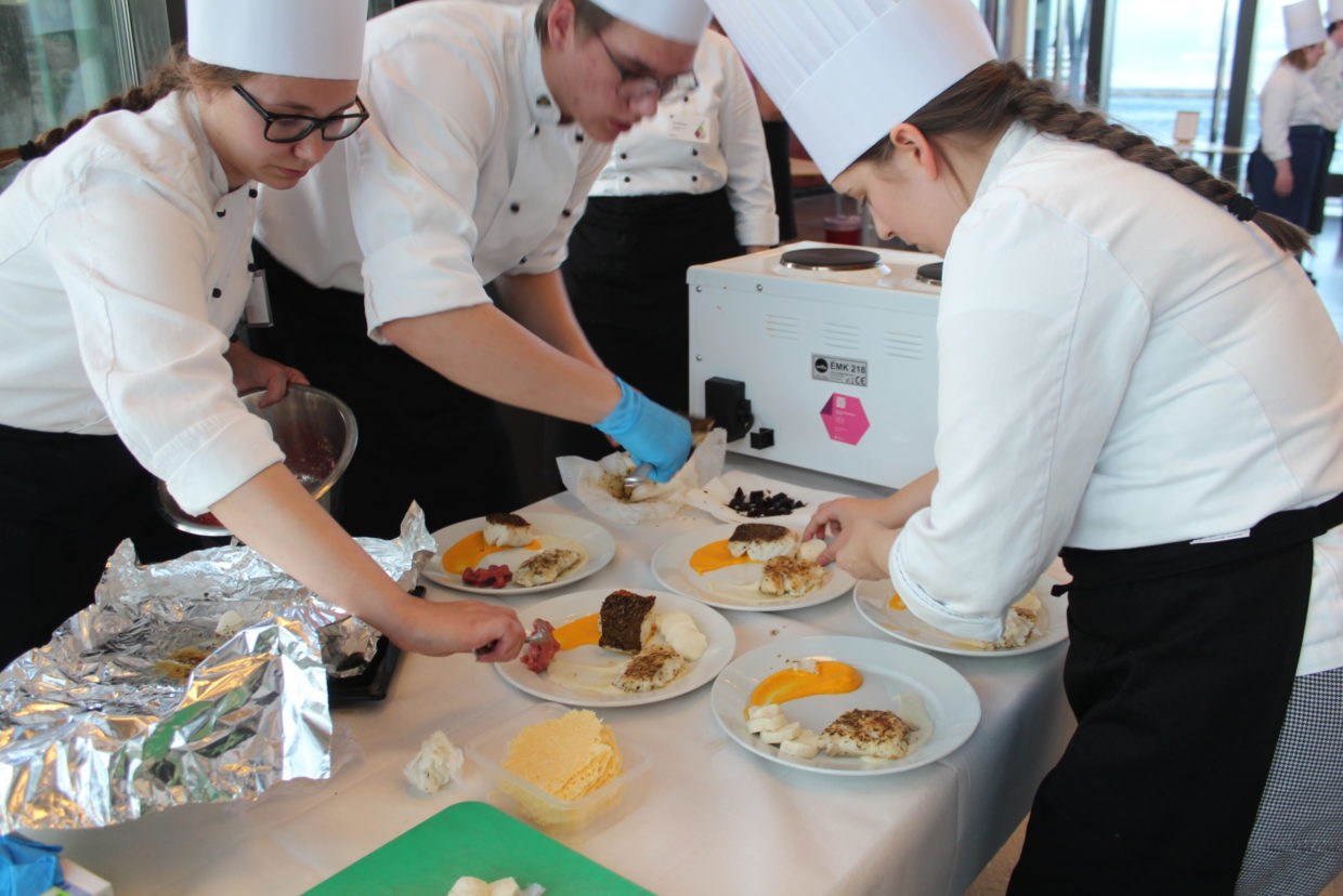 13.-14. januar 2020 arrangerte vi derfor Kokkecamp for restaurant- og matfagelever fra Troms og Nordland – for 3.gang! Årets kokkecamp fant sted i Tromsø, på Ishavsbyen vgs. Fra videregående nivå deltok hele 82 elever fra restaurant- og matfag i Troms og Nordland fylke (44 fra Troms, 19 av disse fra skoler med blå fag) på arrangementet, fra ungdomstrinn deltok 51 elever (8.-9.trinn) fra både Grønnåsen ungdomsskole og Finnsnes ungdomsskole. Inkluderingen av ungdomsskoleelever ble gjort for å styrke rekrutteringen til restaurant og matfag – en linje som dessverre sliter med dårlige søkertall i store deler av Nord-Norge, men som er svært viktig for sjømatnæringa.