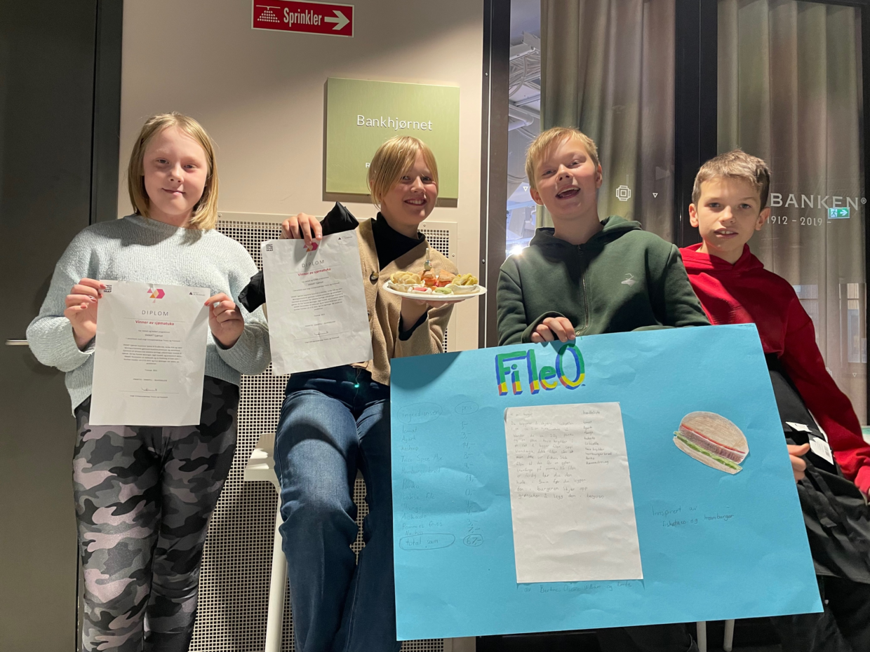 På 6. trinn ble det presentert 10 nye kreative og fristende retter, men til syvende og sist var det gruppa FileO stakk av med seieren! De valgte å kombinere sunne ingredienser med laksefilet i en hamburger! Gruppa ble inspirert av fisketaco og tok disse smakene videre (Den hemmelige ingrediensen er panko som gir en krispi konsistens 🤫). Gruppa er sikker på at dette blir en hit hos barn!