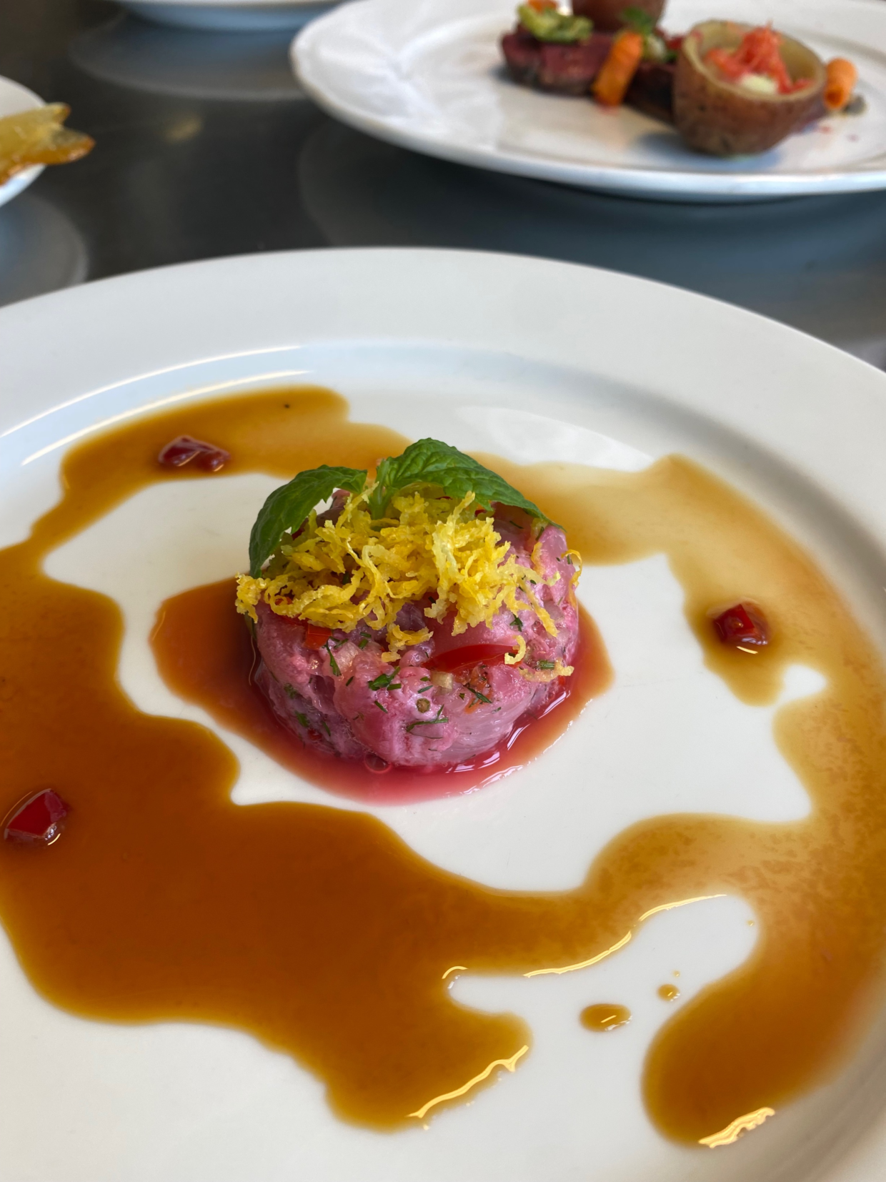 Vi hadde med oss dyktige veiledere inn i kokkekampen, blant andre Vegard Stormo fra Scandic Narvik som ble kåret til «Årets kjøkkensjef 2021», «Årets sjømatkokk 2019» Kenneth Pettersen fra den fantastiske restauranten Fjøsn, på Senja - og hele veien fra Rogaland, Matkanalens egen «Chez Ina» Ina Therese Lindvik Nornes (avbildet). På første dag av kokkekampen var veilederne fordelt på hver sin stasjon på kjøkkenet, og viste fram og delte sine kunster med de unge kokkene. På dag to av kokkekampen måtte eleven imponere veilederne, som nå satt i juryen.