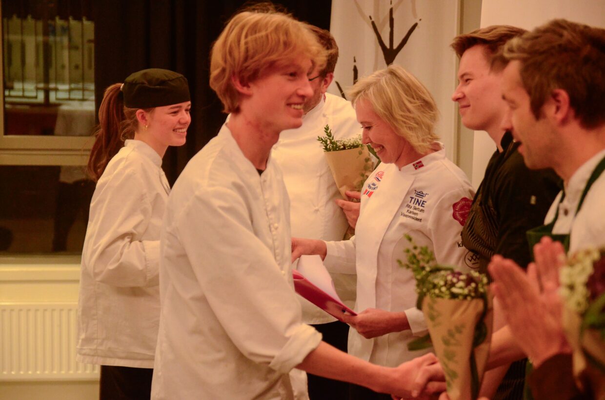 18 retter seneres skulle det likevel kåres én vinner av kokkekampen. FCL UB fra Ishavsbyen VGS gikk seirende ut med følgende meny: