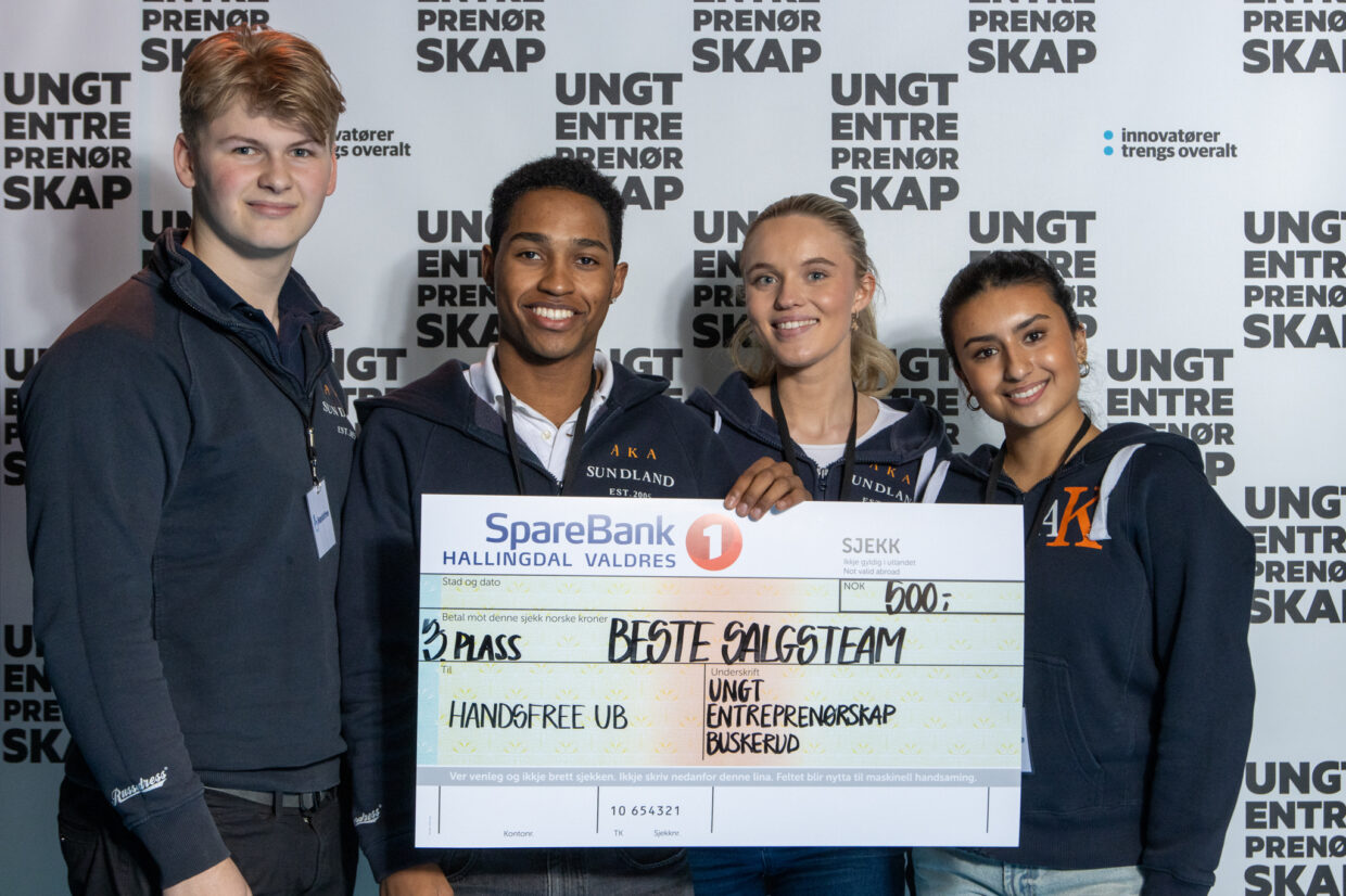 Handsfree UB utvikler et digitalt system for håndsopprekning i timene. Ungdommene går på Akademiet VGS Drammen på Studiespesialisering og Medier og kommunikasjon, og skal representere Buskerud i NM for Ungdomsbedrifter 2024.