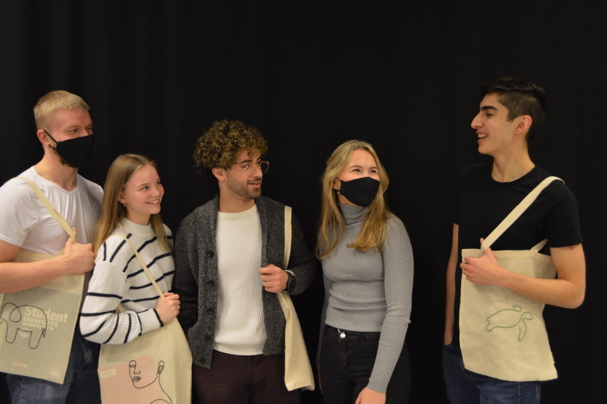 Både munnbindene og handlenettene kan komme med trykk og motiver om kundene ønsker det.
