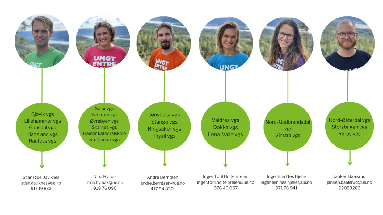 I oversikten under ser du hvilken UE-rådgiver som har oppfølgingsansvar for de ulike videregående skolene i Innlandet.