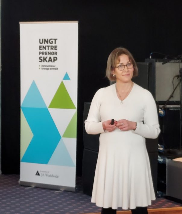 Cathrine Moksnes er merkevarebygger og trendkurator, og hun tok for seg noen av de store samfunnstrendene og hva disse betyr for lærere og elever som jobber med entreprenørskap. Hvordan treffer vi blink med ideene våre, og hva skal til for å bli sett og hørt?