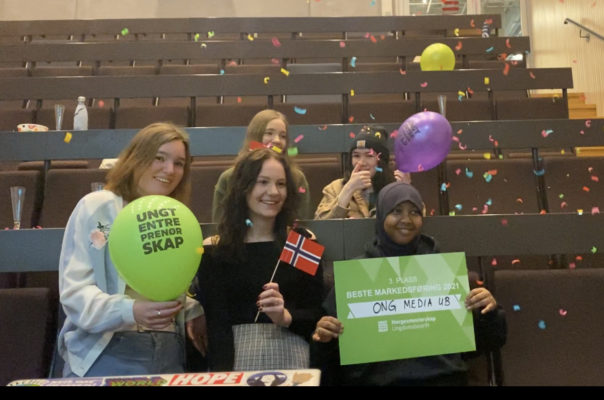Prisfest ble det også på Hamar katedralskole. De som har fulgt bedriftene i sosiale medier, har sett hyppige poster og oppdateringer om podkastene til Ong Media UB – og det er nettopp i kategorien Beste markedsføring at de har gjort seg spesielt bemerket. Det gode arbeidet ble belønnet med en plass på pallen!