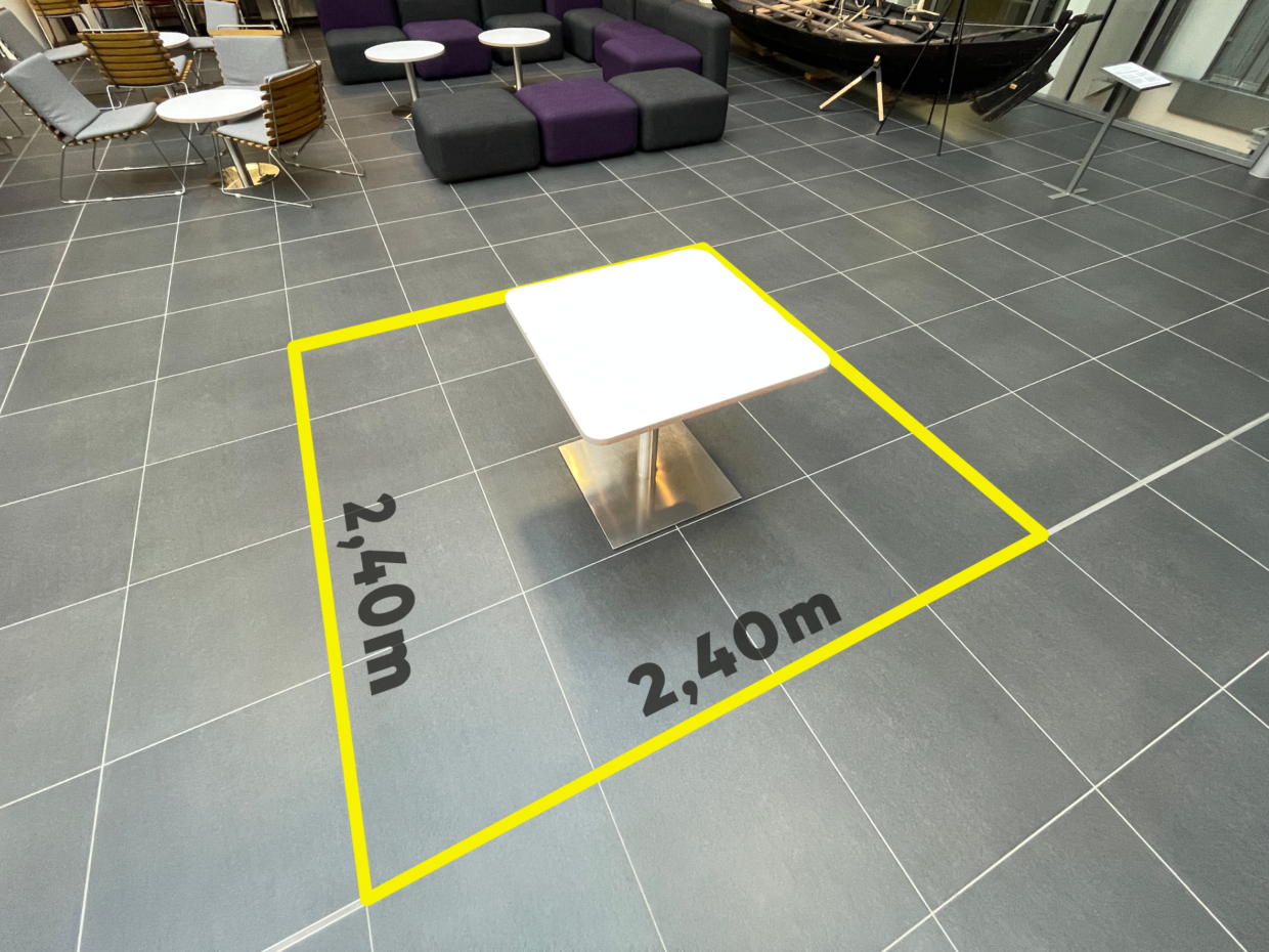 - Dere får et lite bord - Enten 80x80 cm eller 120x45 cm, høyde ca. 75 cm. Det er også lov å ha med eget om dere ønsker det