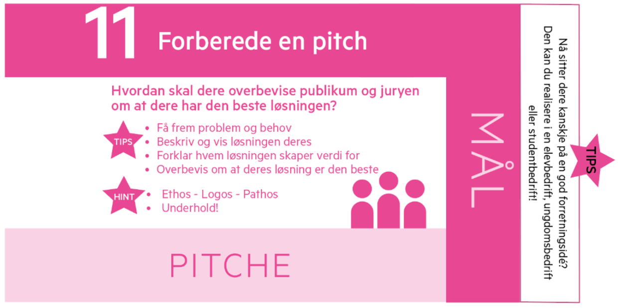 Dere skal nå forberede en pitch hvor dere presenterer forslaget deres.