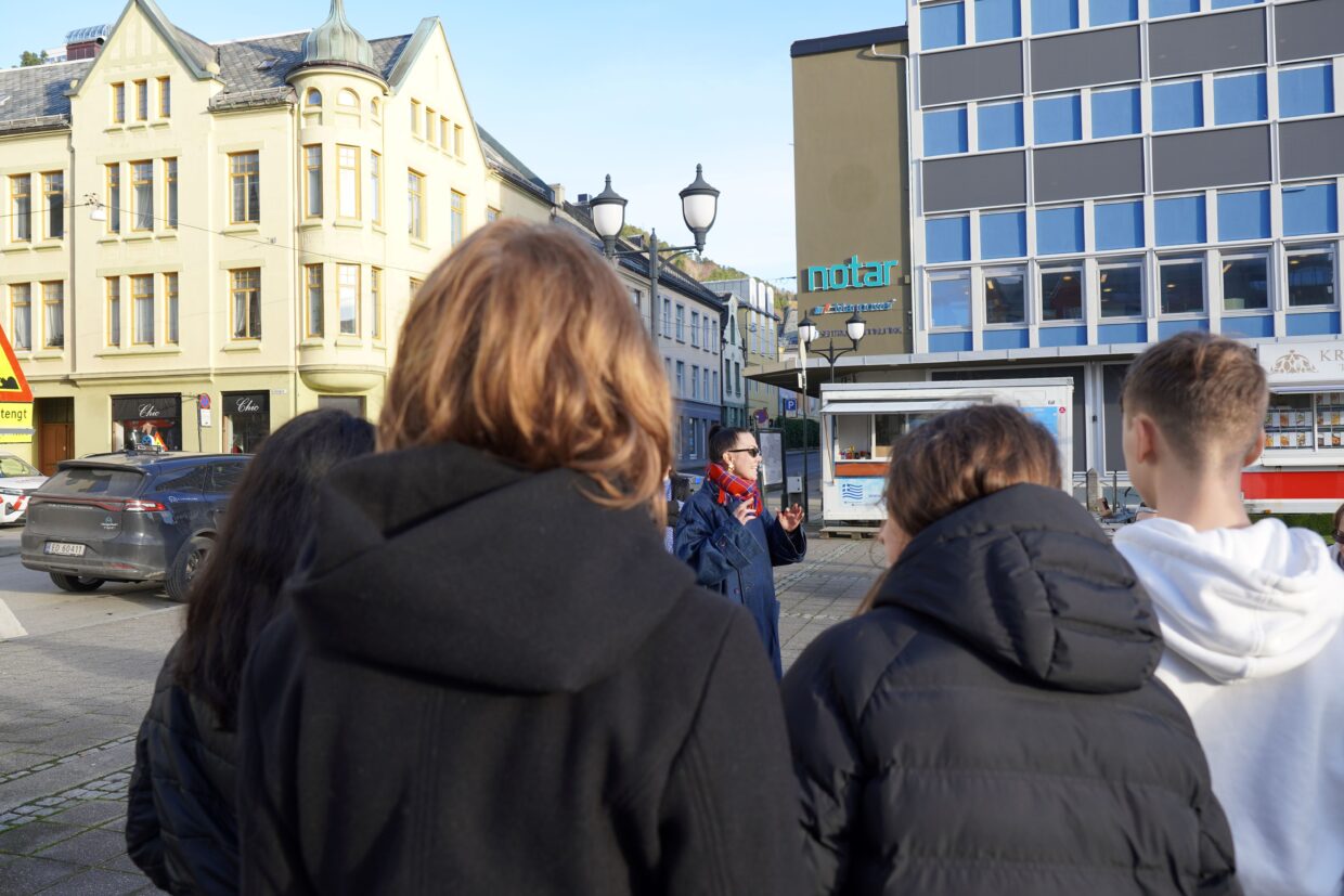 Etter kick-off på Terminalen la elevene ut på en byvandring gjennom Ålesund sentrum, der de besøkte de aktuelle stedene for oppdraget. I tillegg møtte de representant fra Ålesund Sentrumsforening i Kommandosentralen inni Byfjellet hvor de fikk høre om Ålesund før, nå og i fremtiden. De besøkte også Destinasjon Ålesund/Sunnmøre sitt kontor og fikk innsikt hva Ålesund kan tilby fra et turismeperspektiv. Byvandringen inkluderte også et møte med Ålesund rulleforening i skatehallen. Denne turen ga dem et godt grunnlag for idéutvikling og inspirerte dem til å se på oppdraget med nye øyne.