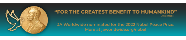 Vi i Ungt Entreprenørskap er utrolig stolte over å bli nominert til Nobels fredspris sammen med vårt internasjonale nettverk i JA Worldwide. I mer enn 110 land gir vi unge kompetanse og ferdigheter til å bygge fremtidens samfunn. Det er en stor ære å få anerkjennelse for at vårt arbeid bidrar til en mer fredelig verden.