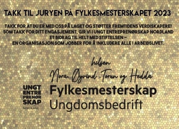 Som takk til alle våre støttespillere, alle dere ildsjeler som stilte opp i juryen på årets Fylkesmesterskap for ungdomsbedrifter - gir vi denne donasjonen til HELT MED stiftelsen.