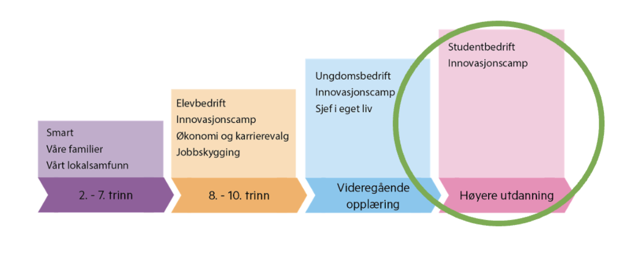 Programmet planlegges og gjennomføres i samarbeid med universiteter, høyskoler og fagskoler som en del av studentenes studieprogram. Varigheten varierer, og kan tilpasses med tanke på studieplaner, lokale rammebetingelser og faglige krav. Programmet bidrar til å utvikle studentenes entreprenørielle ferdigheter, og er en veldig god utgangspunkt for å få mer arbeidslivsrelevans i studiene.