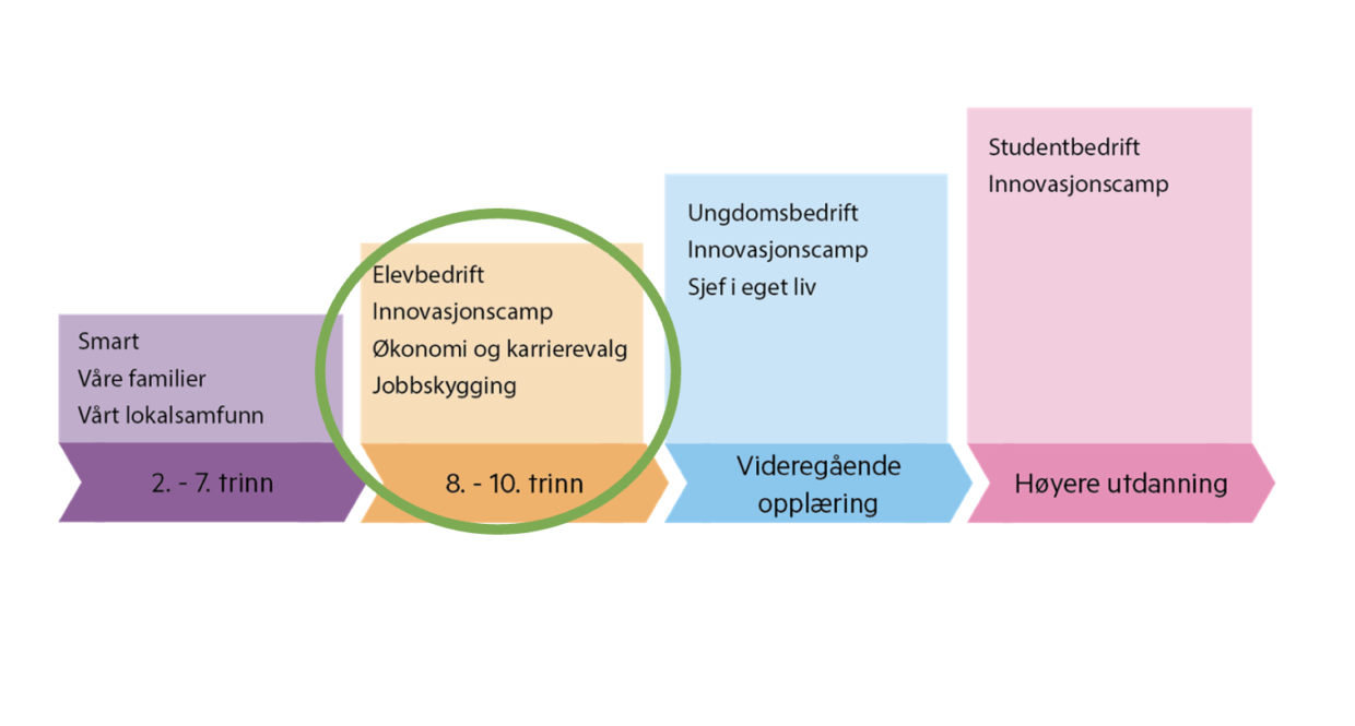 Vi tilbyr egne øvelser og aktiviteter for hvert trinn på ungdomsskolen som gradvis gjør elevene mer bevisst på valg de gjør etter 10.trinn. Gjennom gode forberedelser, møter med arbeidslivet og rom for refleksjon i etterkant får elevene økt kompetanse og mulighet til å gjøre reflekterte valg for egen framtid.