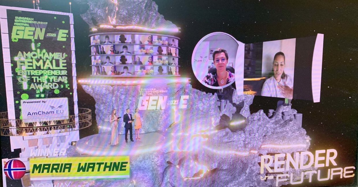 Maria Wathne (26) ble i dag kåret til årets kvinnelige entreprenør «AmCham EU Female Entrepreneur of the Year Award» under EM for studentbedrifter i regi av JA Europe/ Ungt Entreprenørskap. Maria studerer innovasjon på Høyskolen Kristiania i Oslo hvor hun er daglig leder i studentbedriften Paramate SB. I tillegg til oppmerksomhet, heder og ære får også Maria ett års mentoroppfølging fra AmCham.