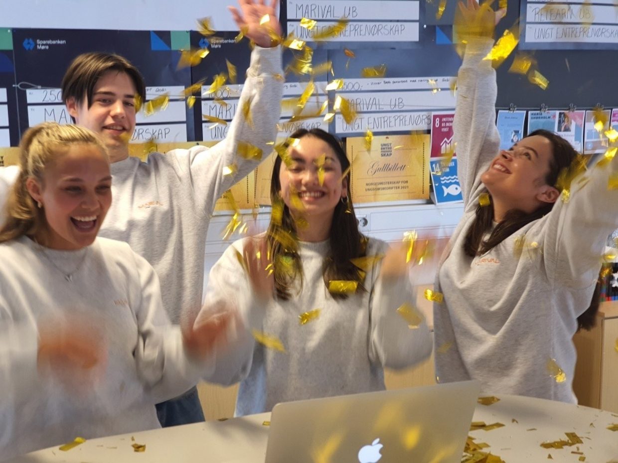 Marival UB består av elevene Karoline Clausen- Bekken, Maria Kristin Mondragon Smørholm, Ane Dyrnes, Lena Hanssen og Markus Egge Sandvik som går andre året på Innovasjon og ledelse ved Romsdal videregående skole. Elevene er hoppende glade etter den europeiske seieren. – Med Atlanterhavet som vår nærmeste nabo og fisk som vår daglige kost, vil vi bidra til at både vår og de fremtidige generasjonene, kan oppleve en verdikjede i samspill med næringskjeden. Fremtiden er avhengig av unge, innovative gründere for å skape forandring. Utdanningstilbudet på skolen vår har gjort det mulig for oss å bidra i den innovative utviklingen, og vi er veldig takknemlig for all hjelp vi har fått fra våre dyktige lærere og medelever. Vi er superstolte av at vi fikk representere Norge og at vi vant en så stor, internasjonal konkurranse, sier elevene i Marival UB. I finalen konkurrerte Marival UB med ungdomsbedrifter fra Belgia, Frankrike, Irland, Portugal, Nederland og Storbritannia. Alle med smarte ideer som har hatt FNs bærekraftsmål 14 «Livet i havet» som rettesnor. Administrerende direktør i Ungt Entreprenørskap Norge, Grete Ingeborg Nykkelmo forteller at den blå økonomien engasjerer de unge, og at Ungt Entreprenørskap hvert år ser både kreative og dyktige ungdomsbedrifter på dette området. – Unge gründere i hele landet ser muligheter og potensiale i den blå næringen. De vet at med bærekraftige løsninger så er dette en viktig vekstnæring for Norge i fremtiden, sier Nykkelmo og gratulerer Marival UB med seieren.