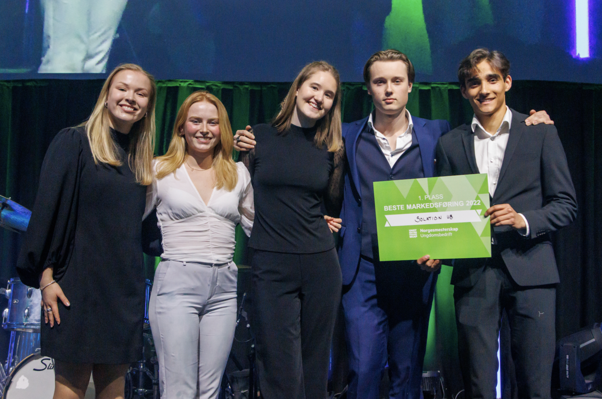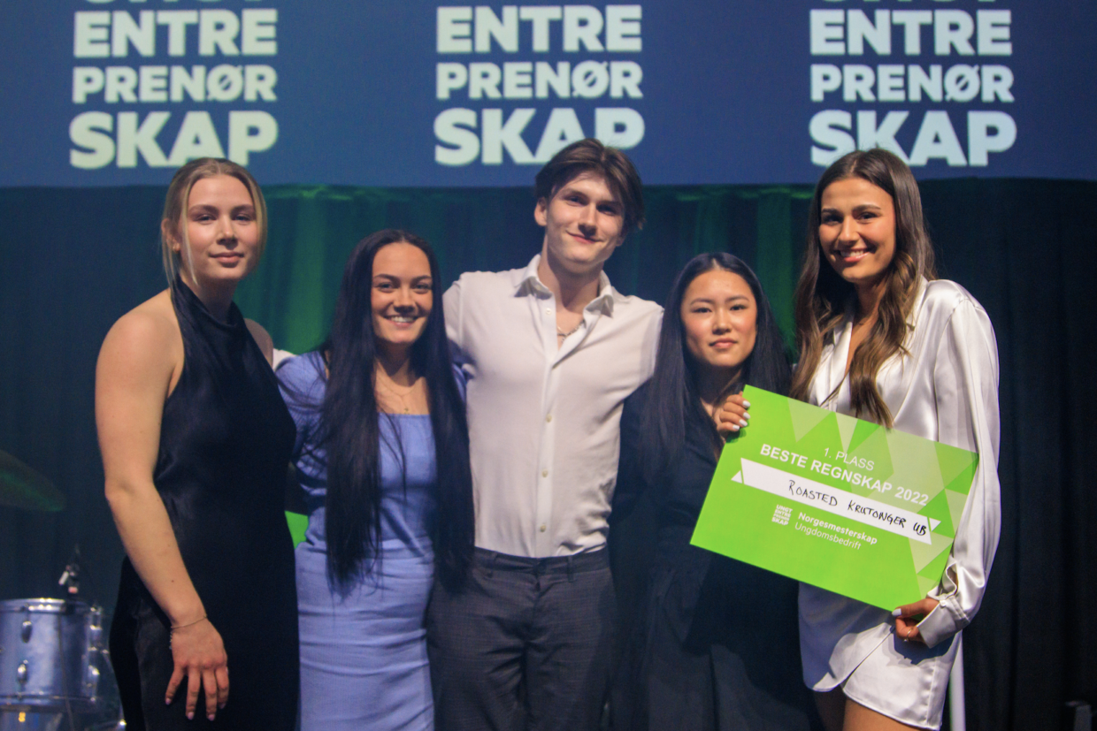 Stemningen stod taket når Roasted Krutonger UB fra Vadsø vgs vant den første prisen som ble delt ut under NM Ungdomsbedrift 22.