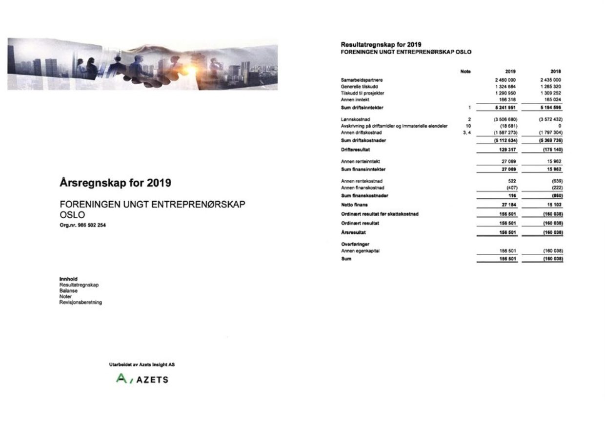 2019 var første år med ny strategiplan for organisasjonen vår, og våre tre hovedtema har vært Oslo europeisk miljøhovedstad, utvikling av nye læreplaner og Oslo som innovasjonsby. Temaene har vært spesielt synlig i prosjektene våre hvor vi både har jobbet på ungdomstrinnet og videregående med innovasjonscamper i samarbeid med Oslo kommune og Osloregionen. I tillegg til å samarbeide i prosjektet "Gjør noe med det", fikk vi et nytt prosjekt med Kavlifondet på Bjerke vgs hvor vi med innovasjonscamp og UB som verktøy finner nye måter å skape økt fysisk aktivitet. Vi fikk også innvilget to nye år med Sentralen UNG Gründer og Propell av Sparebankstiftelsen DNB, og vi kan da fortsette å gi unge veiledning og startkapital for å øke verdiskaping og innovasjon i Oslo. På slutten av året ble de første nye læreplanene fastsatt og det er gledelig at skaperglede og kreativitet har fått større fokus. Dette er viktige faktorer i arbeidet med entreprenørskap i utdanning, og vi skal fortsette å være en samarbeidspartner for skolene for å skape morgendagens verdiskapere og skape bro mellom skole og arbeidsliv.