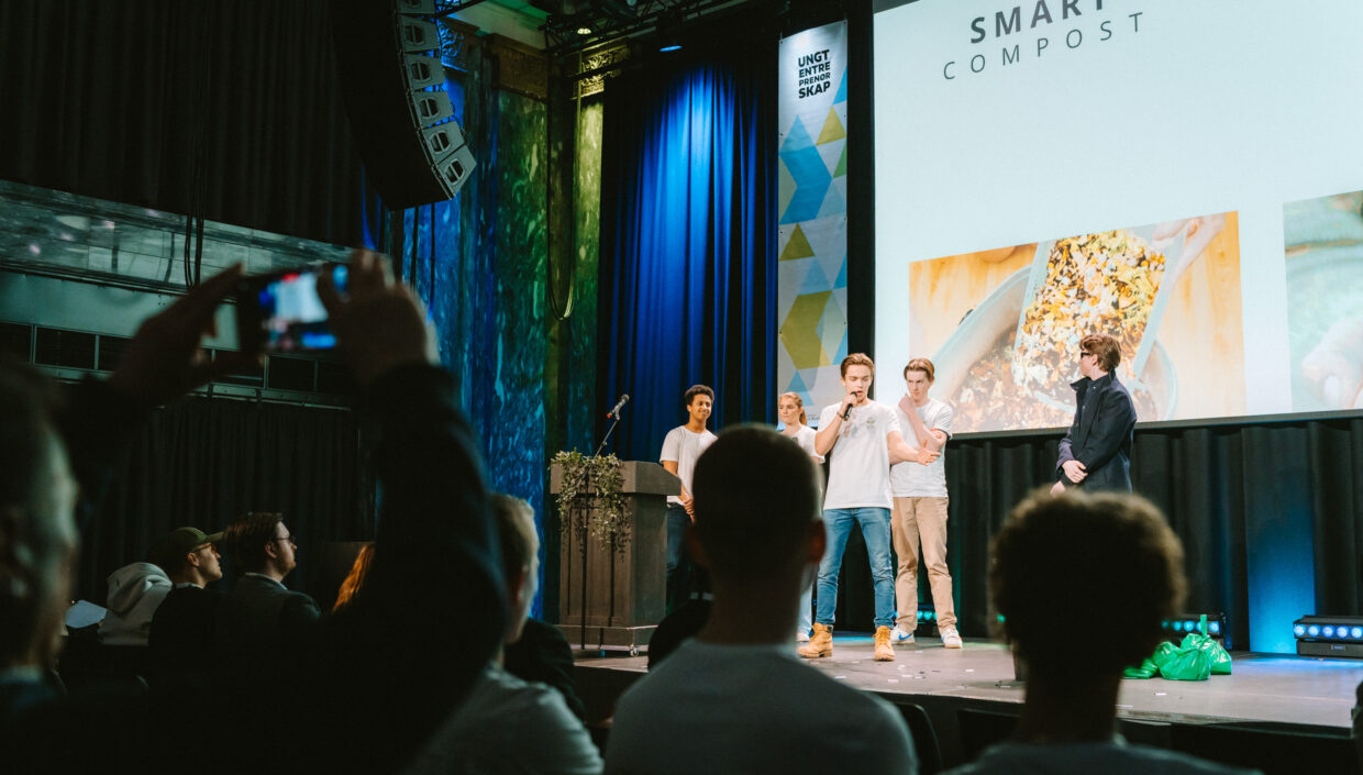 Smart Compost UB utvikler en kompostbeholder som konverterer biologisk avfall til elektrisk energi ved bruk av termoelektriske generatorer. Ungdommene går studiespesialiserende ved Ullern videregående skole og skal representere Oslo i NM for Ungdomsbedrifter 2024.