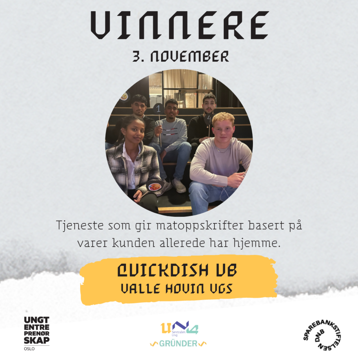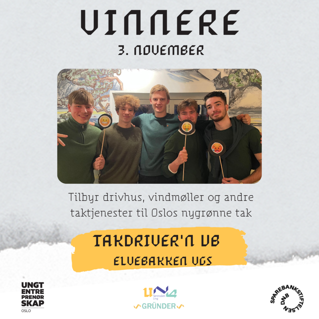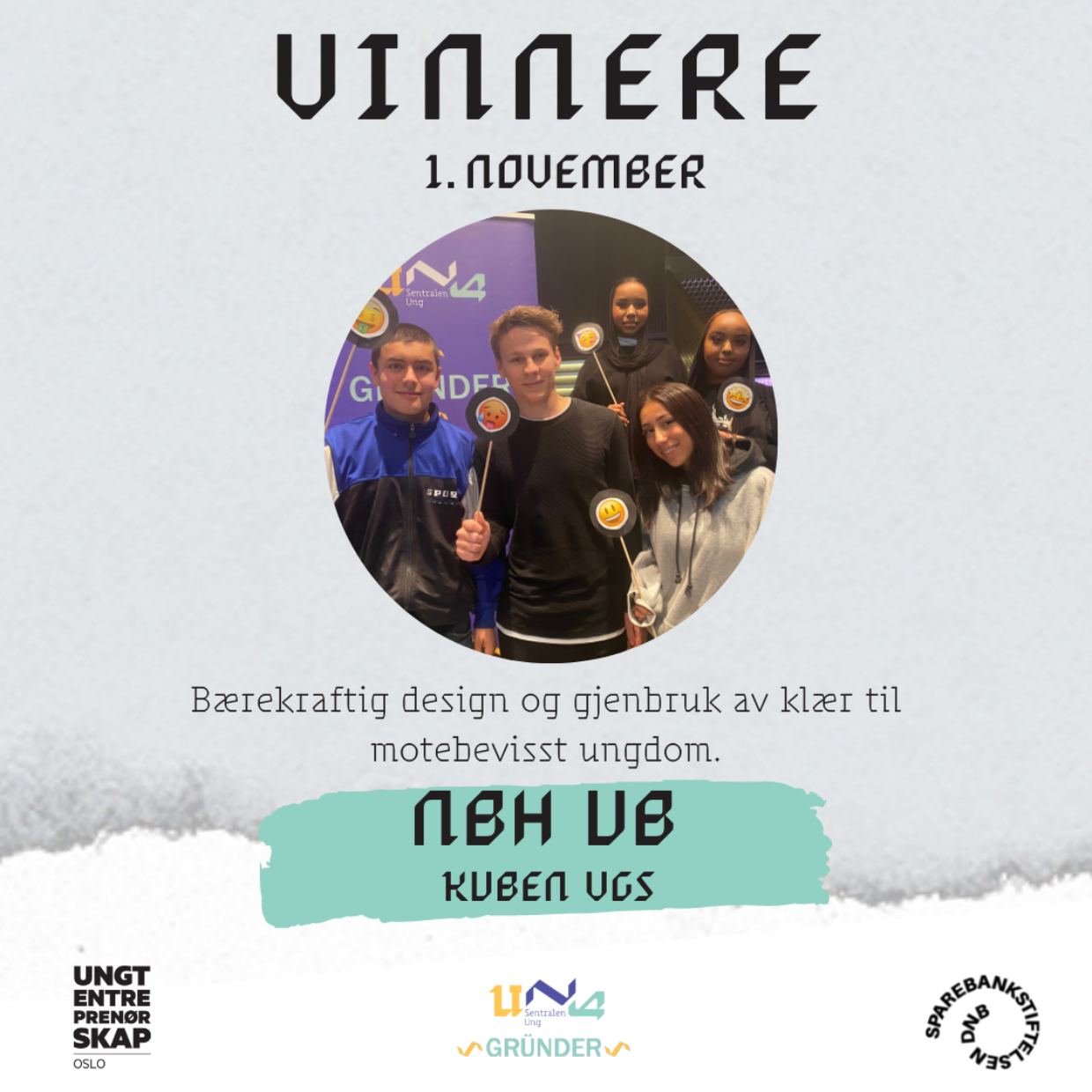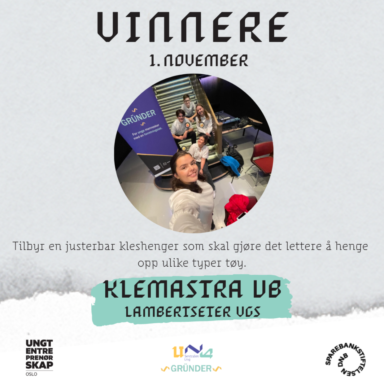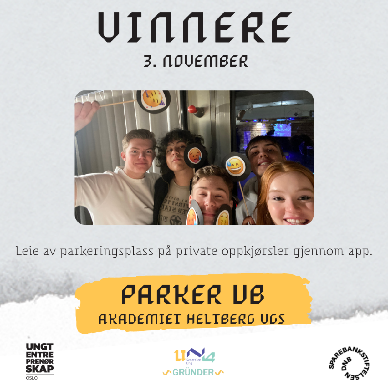 I samarbeid med Sparebankstiftelsen DnB og prosjektet "Sentralen UNG Gründer" har vi arrangert åtte pitchekonkurranser for Oslos ungdomsbedrifter i videregående skole. 360 elever har fått testet seg på en scene og fått tilbakemelding fra jury bestående av representanter fra arbeids- og næringsliv. Ungdomsbedriftene har kjempet om en søknadsmulighet fra Sparebankstiftelsen DnB på opptil 10 000,-. Årets juryer har vært gavmilde - hele 22 søknadsmuligheter har blitt premiert under de fire dagene med pitchekonkurranse!