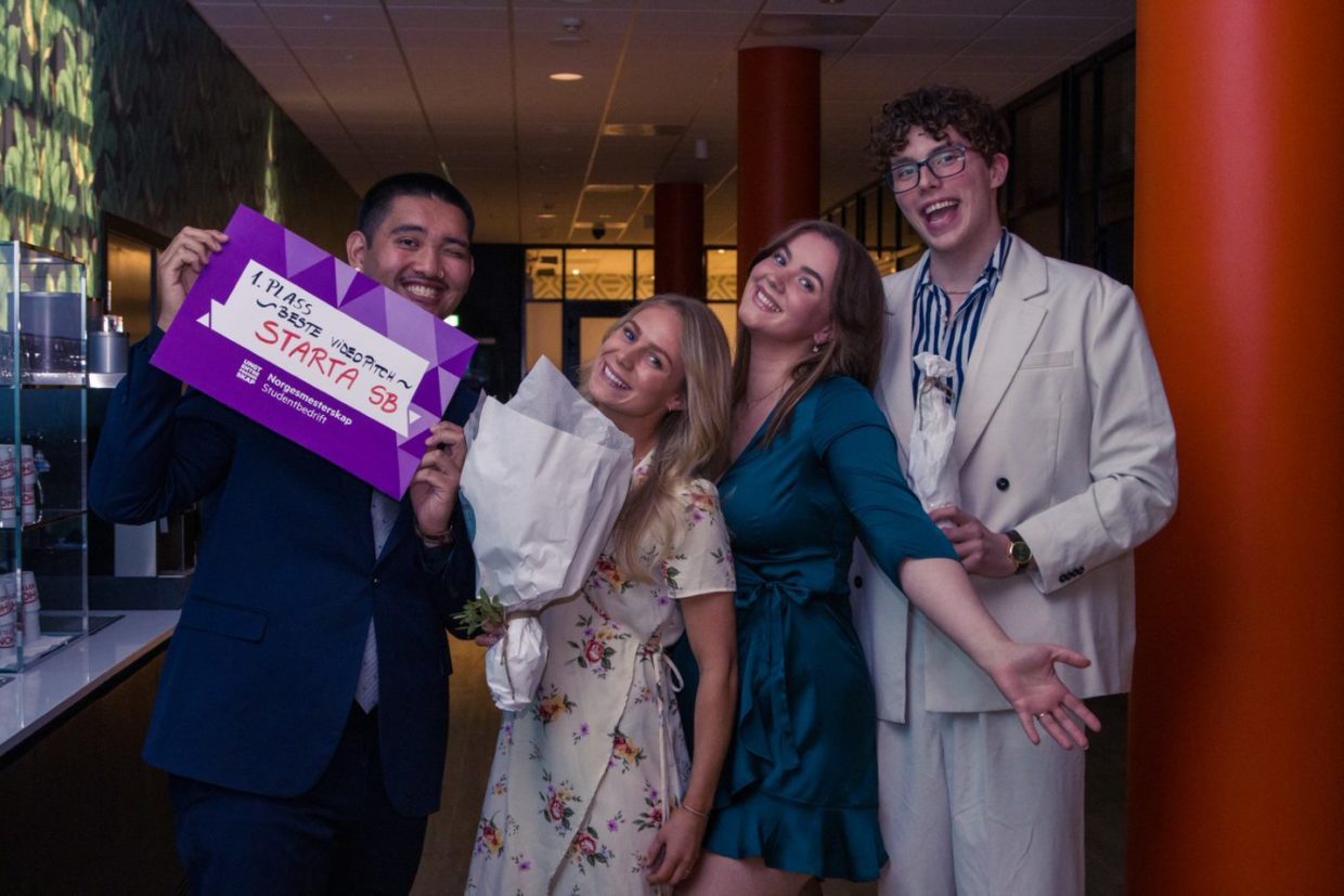 Under festmiddagen ble det liv i Oslo-leiren da Starta SB fra Høyskolen Kristiania fikk prisen for "Beste videopitch" - en imponerende prestasjon!