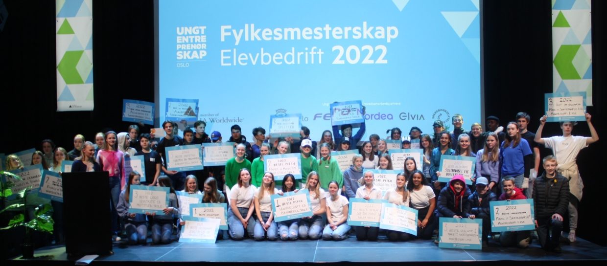Årets Fylkesmesterskap Elevbedrift ble en entreprenørskapsfest hvor vi endelig kunne være på Sentralen igjen, le sammen, konkurrere, inspireres av hverandre og rett og slett ha en veldig fin skoledag. 53 elevbedrifter fra 14 ulike ungdomsskoler hadde stand, 67 elevbedrifter deltok totalt, inkludert innsendingskonkurransene.