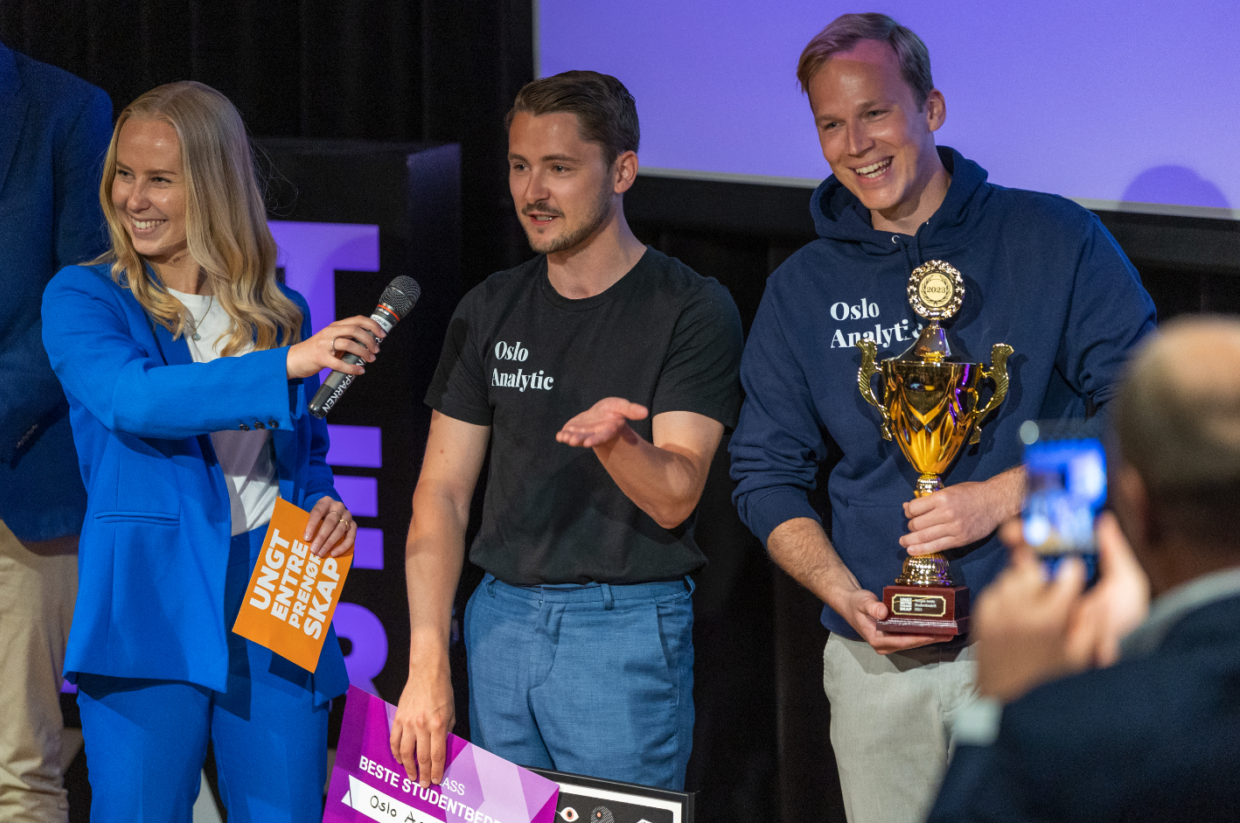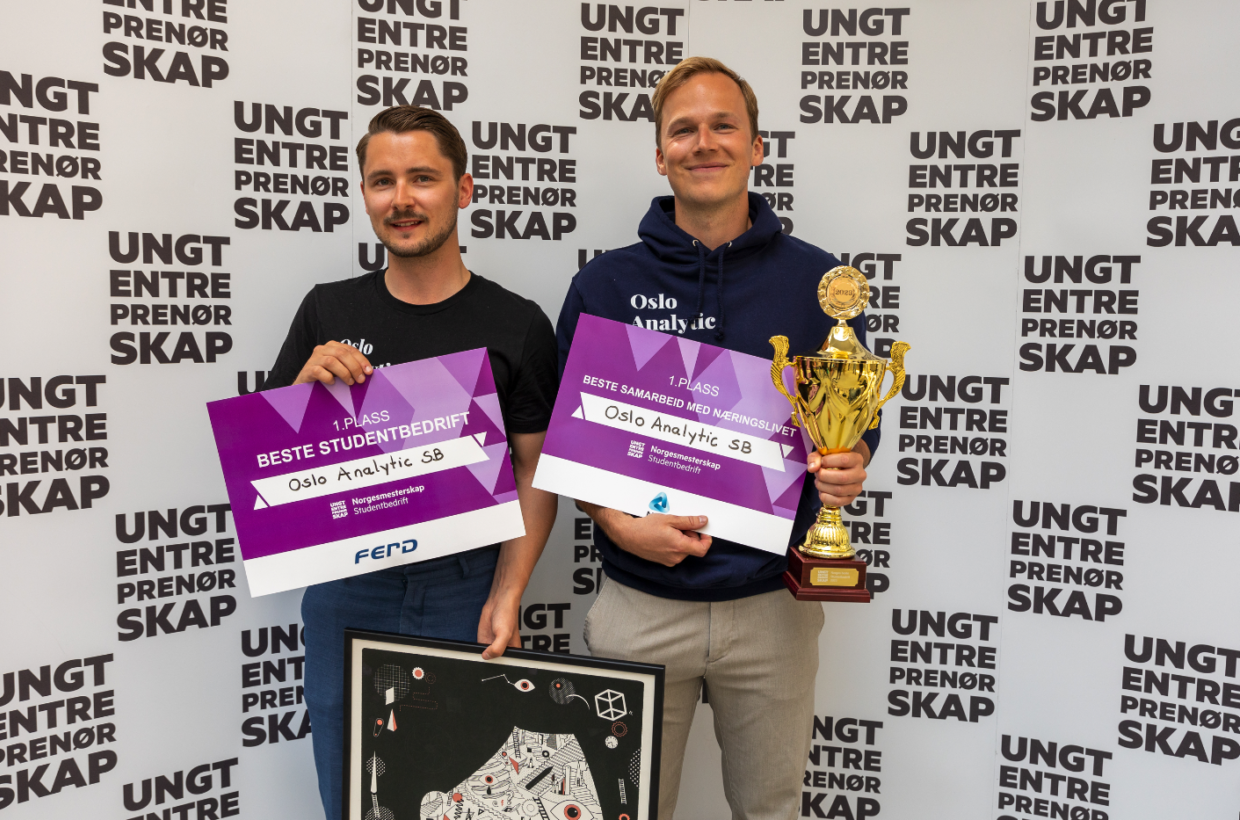 Duoen møttes på masterstudiet i entreprenørskap på OsloMet, og har siden januar lagt ned 2400 timer arbeid i studentbedriften. At hardt arbeid har gitt resultater er en underdrivelse; etter å ha overbevist juryen i NM for studentbedrifter i juni i år gikk Oslo Analytic SB helt til topps og ble kåret til Norges beste Studentbedrift. I tillegg vant de prisen for Beste samarbeid med næringslivet, en annen høythengende pris i mesterskapet.