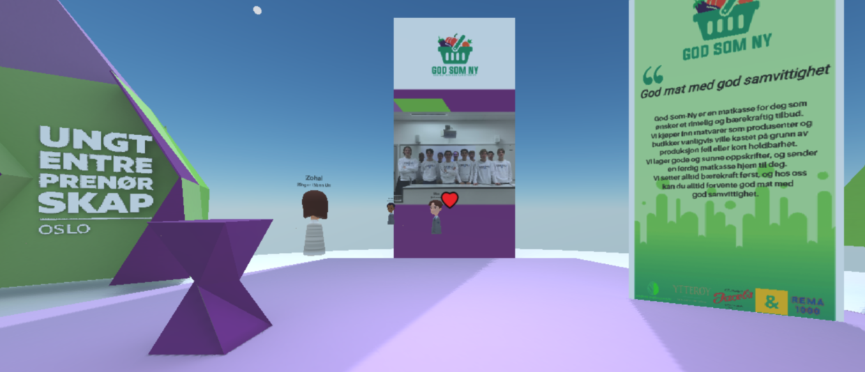 Finalen i konkurransen Oslos beste Ungdomsbedrift ble arrangert i Estraad. Estraad er en helt ny interaktiv måte å møtes på som engasjerer. Her får du en helt annen romfølelse og en mer naturlig interaksjon mellom deltakerne enn tradisjonelle videokonferanseverktøy. Alle som deltok i finalen både som elev, lærer, jury eller publikum valgte et personlig utseende på sin egen avatar og møttes i det virtuelle arrangementet - nesten som den tiden for lenge, lenge siden hvor vi kunne møtes fysisk!
