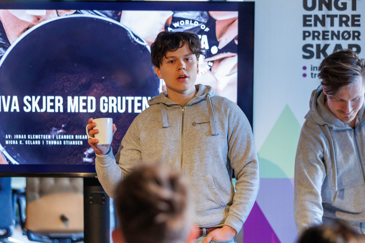 Bærekraftsprisen gikk til Gutta Grut SB fra Høgskolen i Østfold. Deres fokus på bærekraftige løsninger og evne til å tenke utenfor boksen når det gjelder å bruke kaffegrut på innovative måter, gjorde at de utmerket seg. Gutta Grut har blant annet tatt kaffegrut til badet! Deres såpe er beriket med kaffegrut, noe som gir en mild eksfolieringseffekt. Denne såpen er ikke bare god for huden, men også for miljøet.