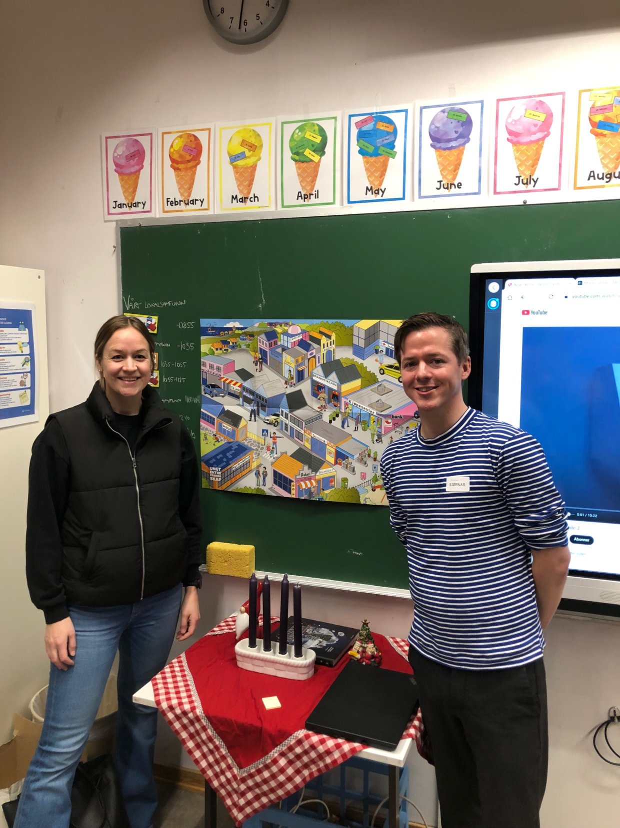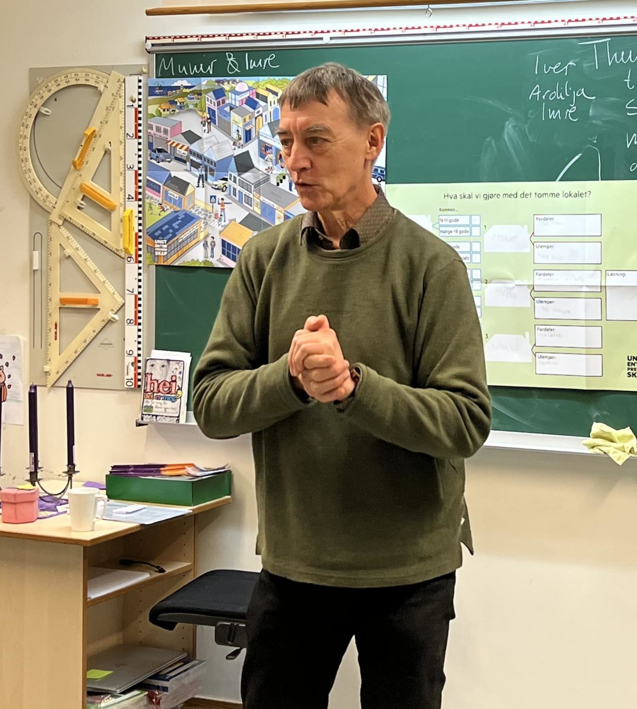 Det var ikke vanskelig å se at oppvekst- og utdanningsdirektør i Trondheim kommune har vært lærer hele livet og Lasse storkoste seg tilbake i klasserommet.