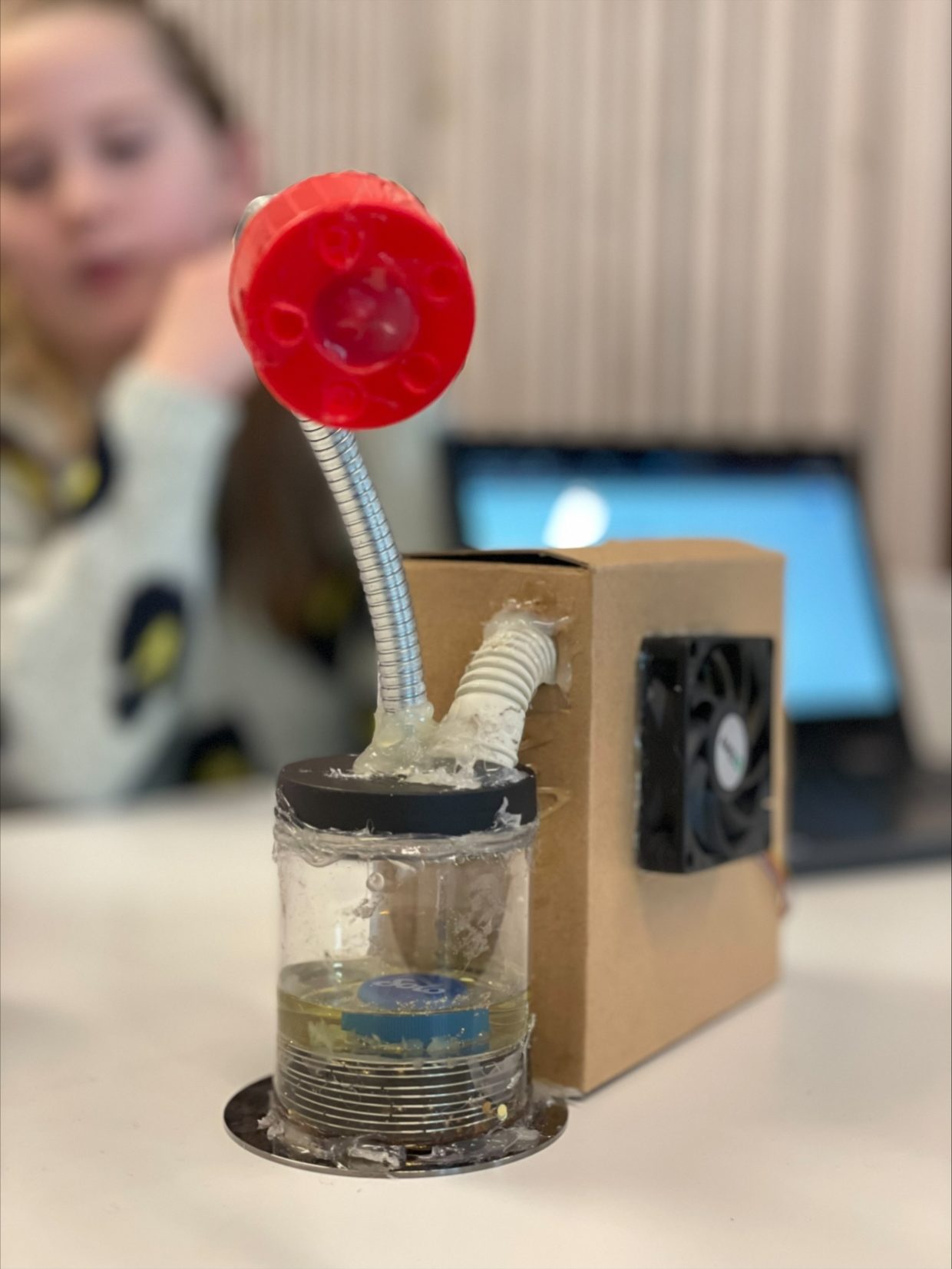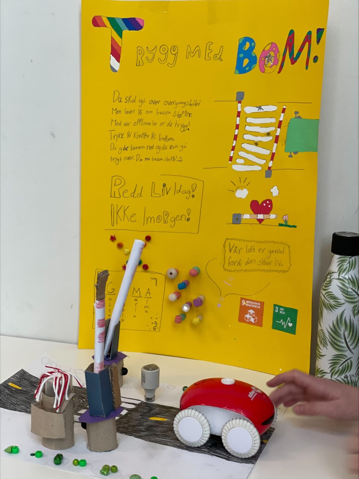 Vi fikk også se et eksempel på en skikkelig vinn-vinn situasjon hvor barn kunne plukke plast som ble lagt i en motor som igjen gjorde om plasten til energi, og vipps så fikk elevene spilletid og var klar for gaming. Genialt for klimaet, og genialt for kidza. En dusj med resirkulert vann fra avfallsvann i huset, renses med kullfilter, og har en skjerm med sensor som bestemmer dusjetid. Som nevnt hadde elevene basert seg på egne erfaringer, og flere elever hadde opplevd situasjoner hvor det ikke føltes trygt på skoleveien. De hadde derfor livreddende løsninger som Trygg trafikk gjerne må komme å se på og en prototyp som viste stor innsats og betydning for gruppa.