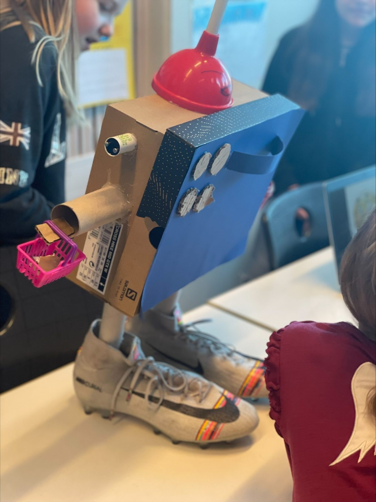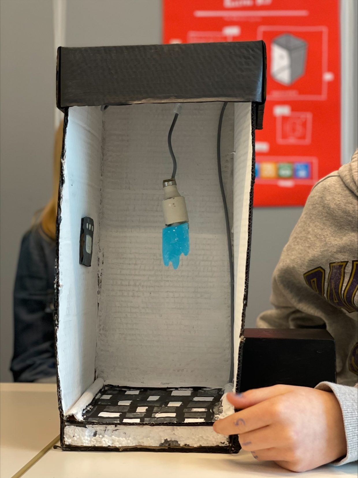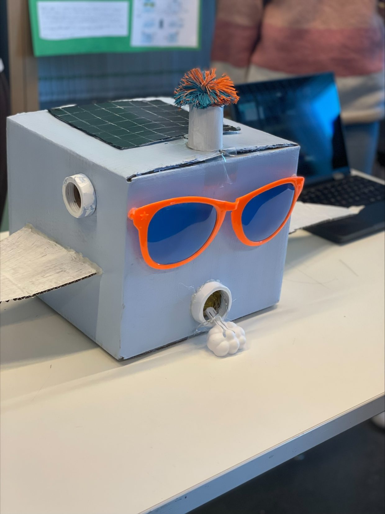 Vi møtte ei engasjert lærergruppe som gledet seg skikkelig til å vise oss hva elevene hadde utviklet. De kunne fortelle at det hadde vært litt frem og tilbake med tilstedeværelse i gruppene på grunn av kovid, og noen hadde fått bare 2 dager fra idefase til ferdig prototyp. Med tanke på de fantastiske løsningene vi fikk presentert, må det tyde på en ting, samarbeid og inkludering! I aller høyeste grad. Her måtte elevene snu på hæla fra dag til dag.