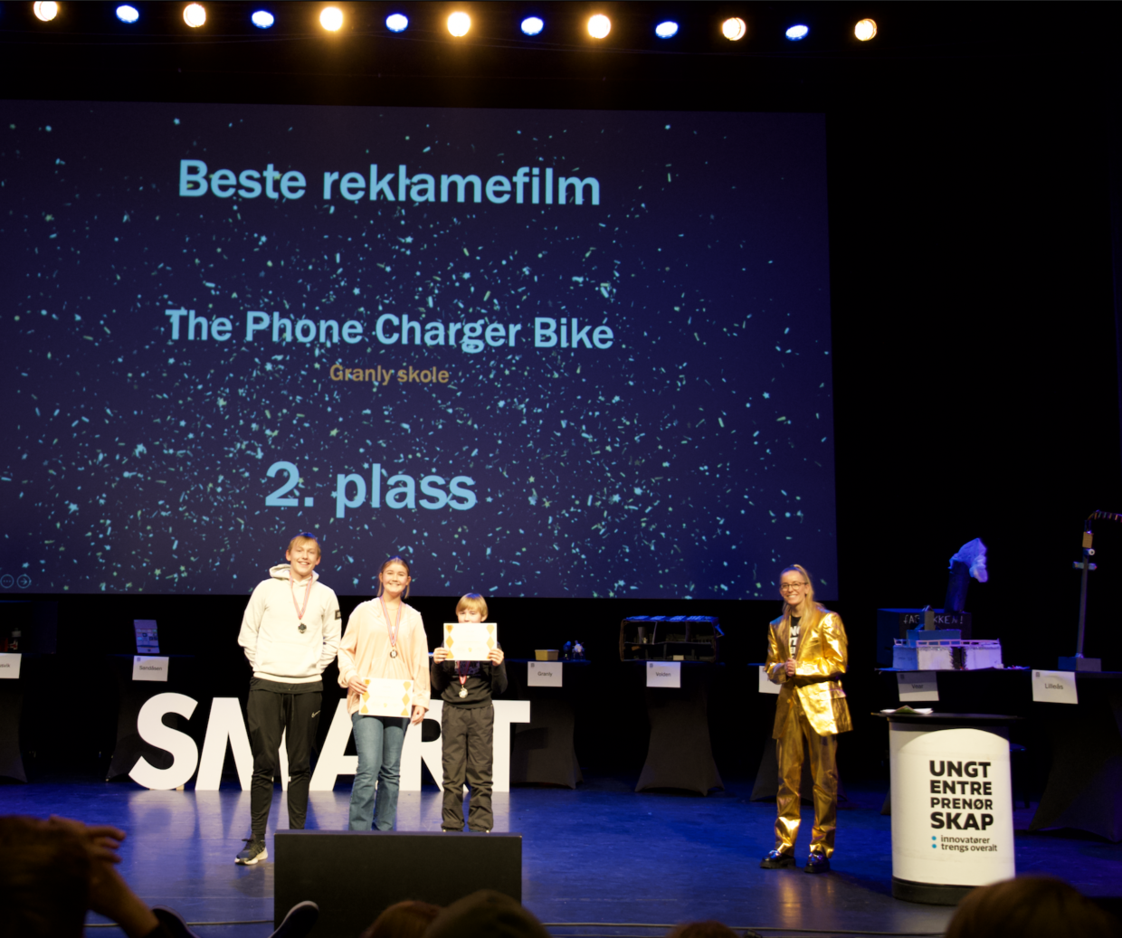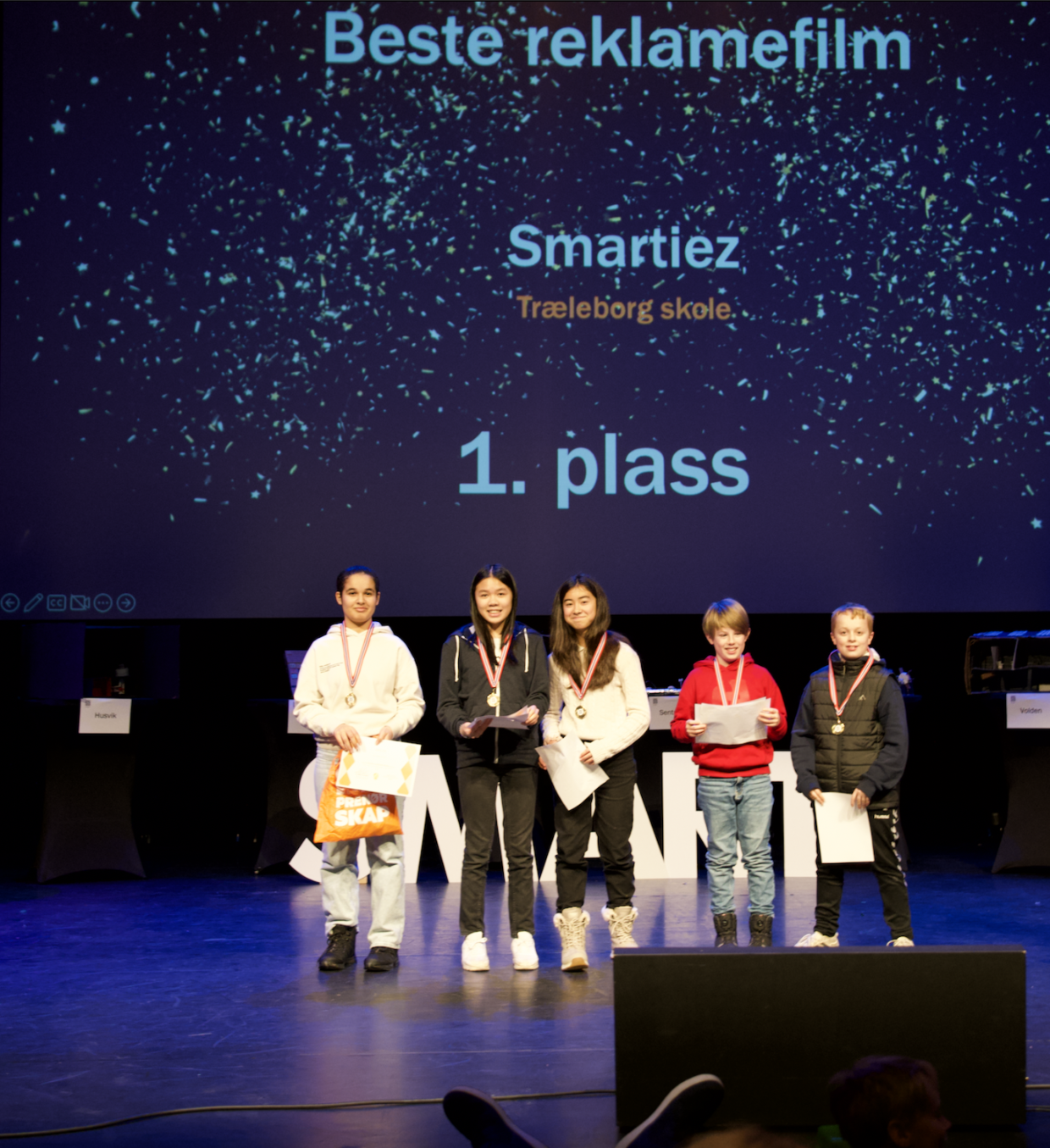 På spørsmål om hva de trodde var det som gjorde at de vant, dro gruppen frem deres presentasjon fra scenen. Nå skal de sammen med klassen avgjøre hva de skal bruke de kr 2000,- til. – kanskje kino eller noe annet, i hvert fall noe skikkelig gøy med klassen, avsluttet Thea Dara med.
