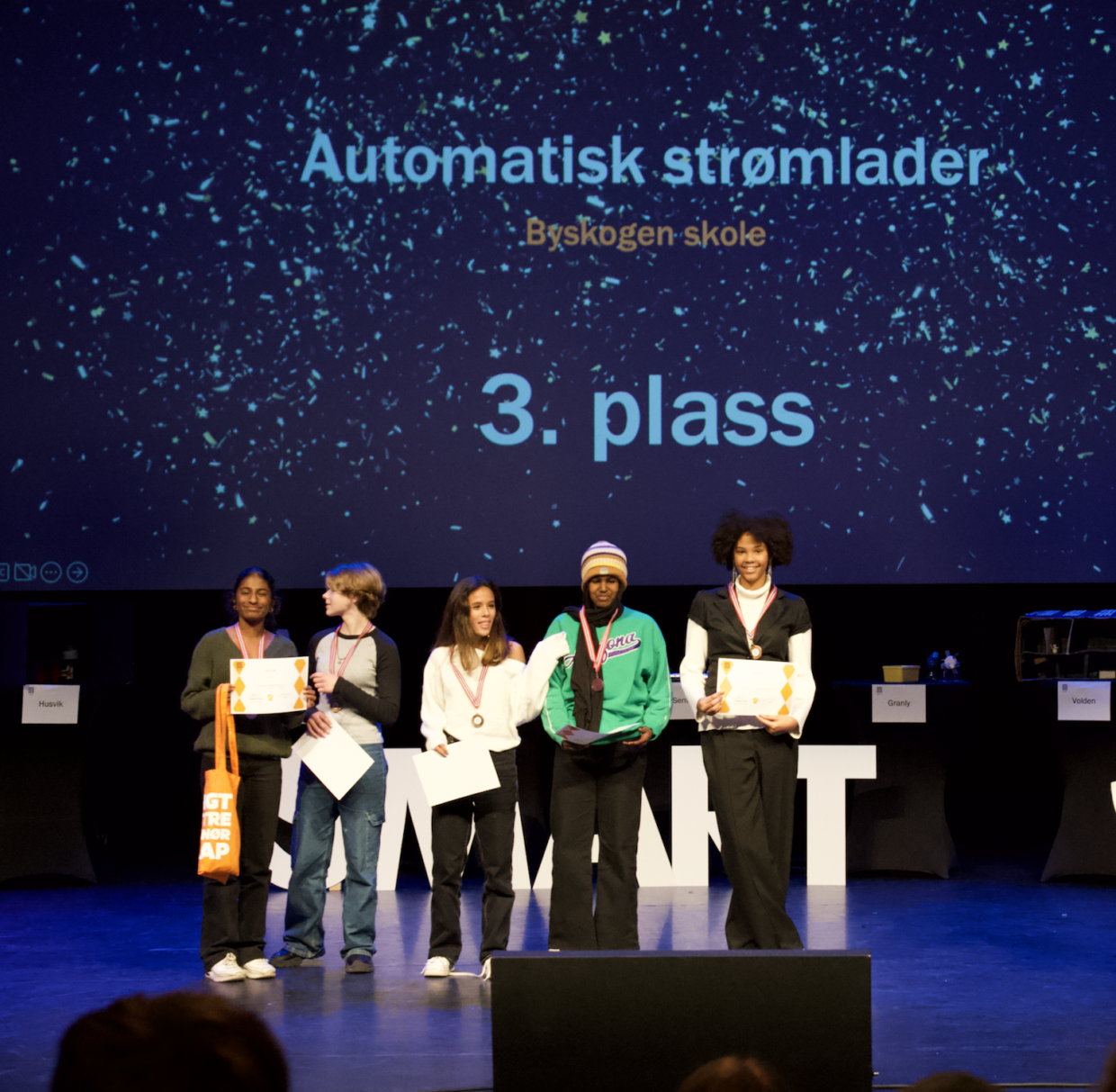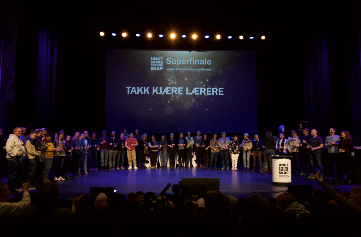 Oseberg kulturhus, 28. november: Foran et publikum på 800 mennesker og jury stakk Smart Camping fra Træleborg skole av med førsteplassen i Superfinalen for Gunnar Knudsens Grønne Innovatører. Deres løsningsforslag om en energiproduserende campingplass som ved hjelp av solceller på campingvognene og energiplater på lekeplassen, imponerte en samstemt jury.