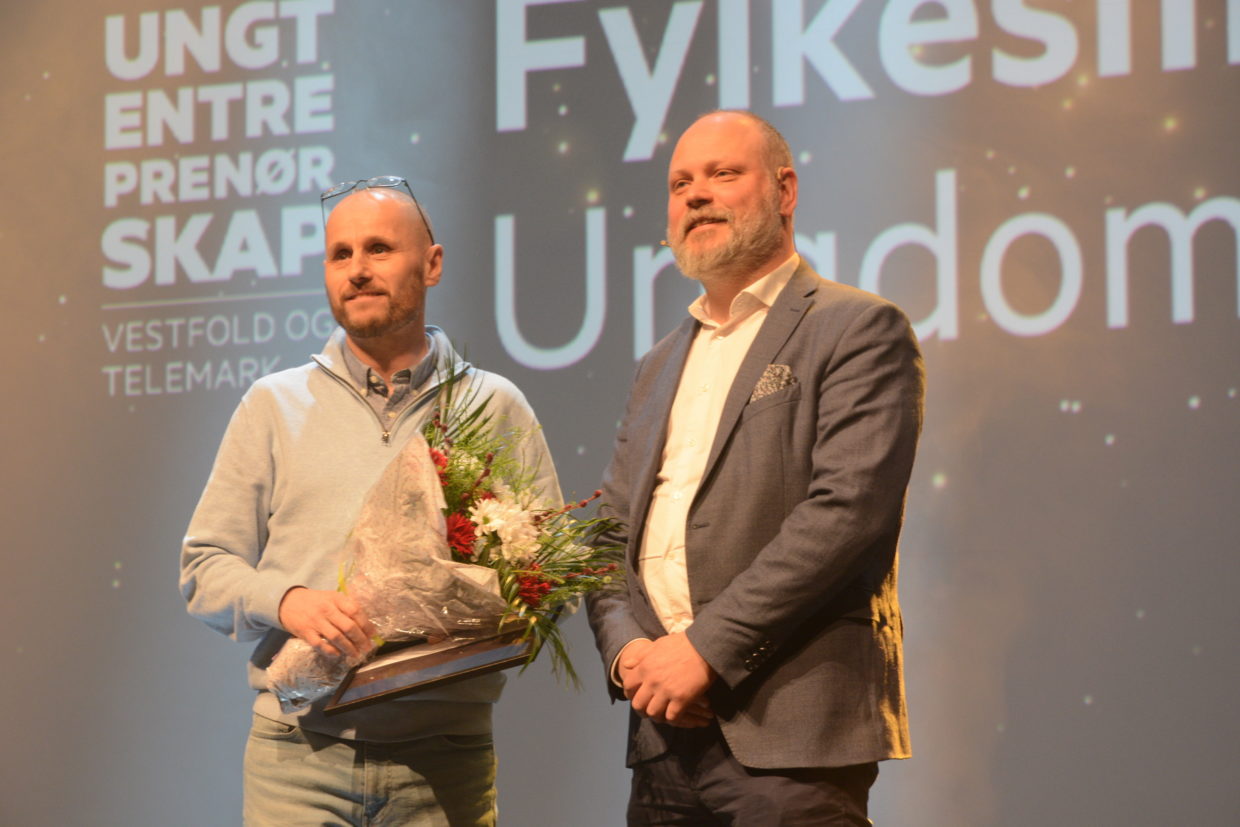 Ungt Entreprenørskap benyttet muligheten til å kåre årets beste entreprenørskapslærer i Vestfold og Telemark. Det var Arne Grave fra Nome videregående skole som trakk det lengste strået og mottok Gunnar Knudsen prisen – beste entreprenørskapslærer. Denne ble delt ut av Kristian Norheim, kommunikasjonsdirektør i Skagerak Energi . I tillegg til heder og ære, diplom og blomster, ble også Arne overrasket med deltakelse i Europamesterskapet for både ungdoms- og studentbedrifter som dette året går ad stabelen i Tallin i Estland i juli. Her følger juryens begrunnelse: