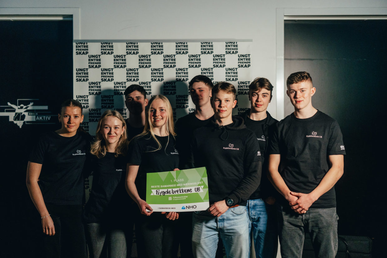 Bygdebrikkene UB deltok på fylkesmesterskapet i Bergen, der dei kom heilt til topps i konkurransen "Beste samarbeid med næringslivet". Og det er ikkje rart når dei har lagt mye tid og energi i å undersøke den potensielle marknaden, og skapt eit bredt engasjement hos det lokale næringslivet - med heile ni sponsorar på laget. Bedriften visar sterkt stoltheit for bygda si, naturen og lokal kompetanse og næringsliv.