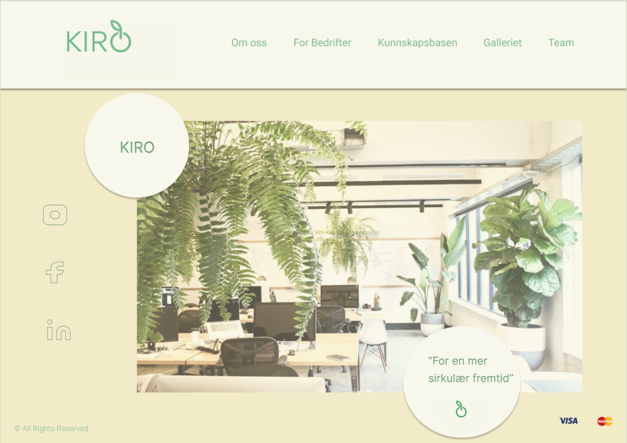 Kiro SB fokuserer på å utvikle en bærekraftig tjeneste. De bruker sin kunnskap om sirkulær økonomi til å sette opp en nettside hvor de hjelper et stort marked med å gjenvinne deres kontormøbler. Dette gir i tillegg en økonomisk gevinst for begge parter. Kiro SB skal fortsette å gå i en miljøbevisst retning, og minske svinn av kontormøbler samt fokusere på å gi en økonomisk smart løsning for å utføre dette.