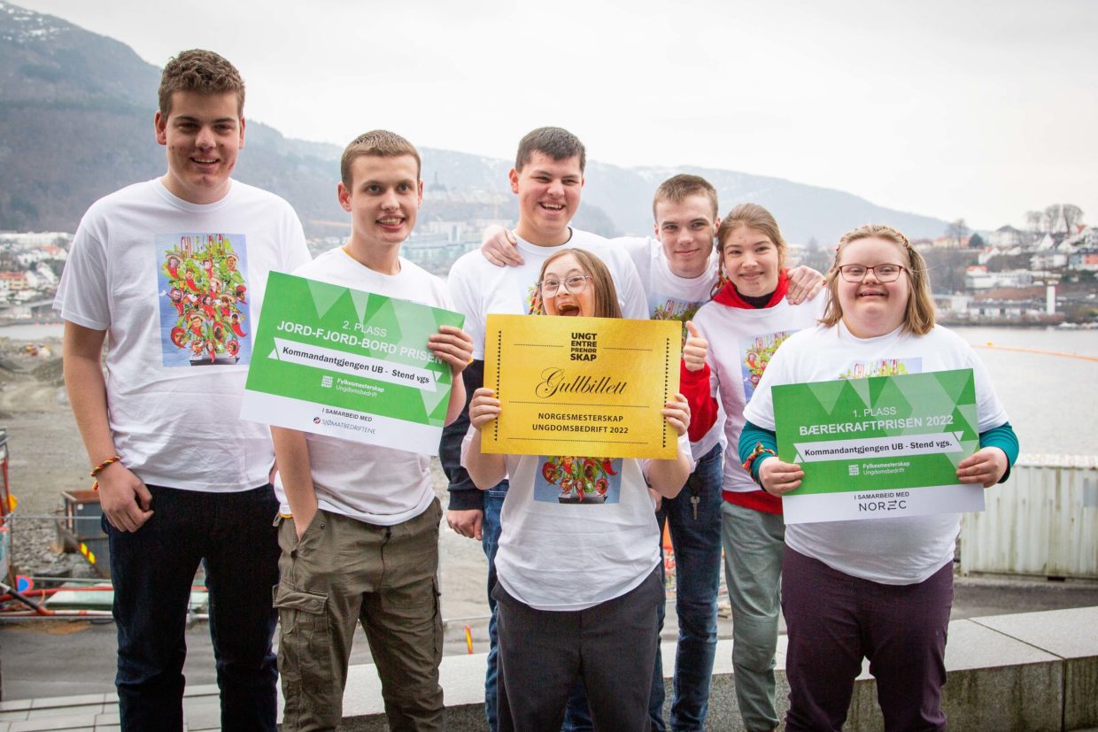 Kommandantgjengen UB imponerte Vestlandsjuryen og stakk av med seieren i Bærekraftprisen. De skal nå representere Vestland i den nasjonale Bærekraftskonkurransen på NM Ungdomsbedrift 2022