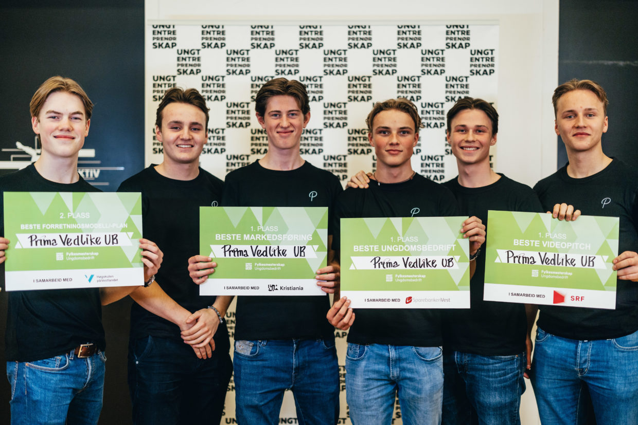 Prima Vedlike UB sin forretningsidé er å utføre profesjonell og bærekraftig vedlikehold av uteområder til en konkurransedyktig pris. Bedriften består av 6 gutter fra Nordahl Grieg videregående skole i Bergen. Med hele tre 1. plasser etter fylkesmesterskapet satser de nå stort på å imponere på NM ved å representere Vestland!