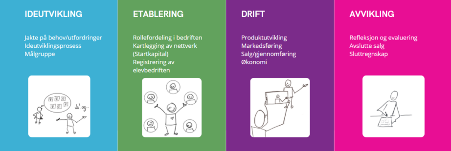 Vi i Ungt entreprenørskap ønsker å gi nysgjerrige lærere inspirasjon og informasjon om hvordan du som lærer kan jobbe med elevbedrift som metode i Arbeidslivsfag og Utvikling av produkter og tjenester.
