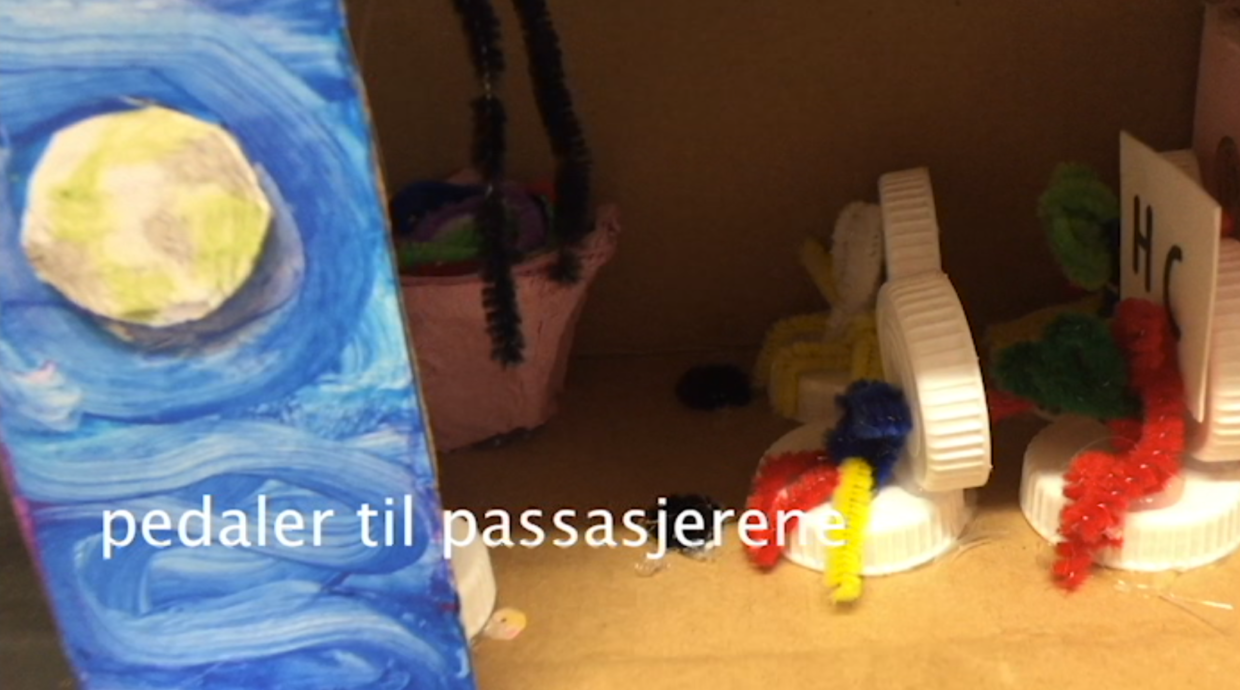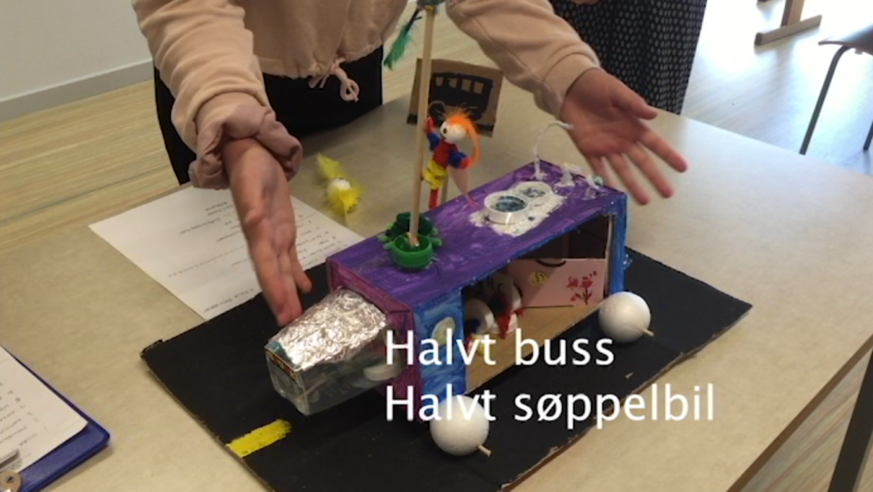 Transportmiddelet er halvt buss og halvt søppelbil. Bussen har et lukket og luktfritt forbrenningsanlegg, og om du har med en søppelpose får du rabatt på billetten. I tillegg til å gå på bioenergi har bussen blant annet to regnkraftverk på taket. Det ene har en overflate av teflon. Elevene kan fortelle at når det regner på teflonet blir det laget elektriske ladninger, og disse elektriske ladningene kan vi gjøre om til energi. Dette er en oppfinnelse fra Hong Kong som kan passe godt på Vestlandet i fremtiden.